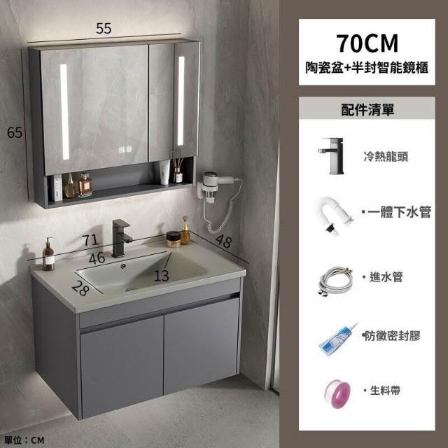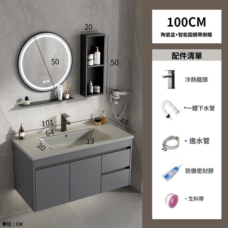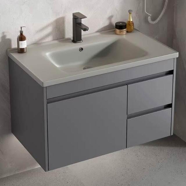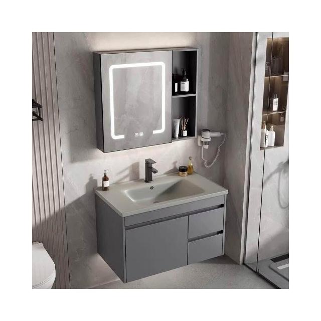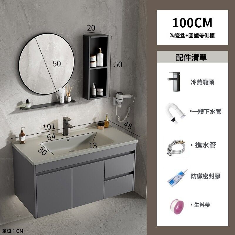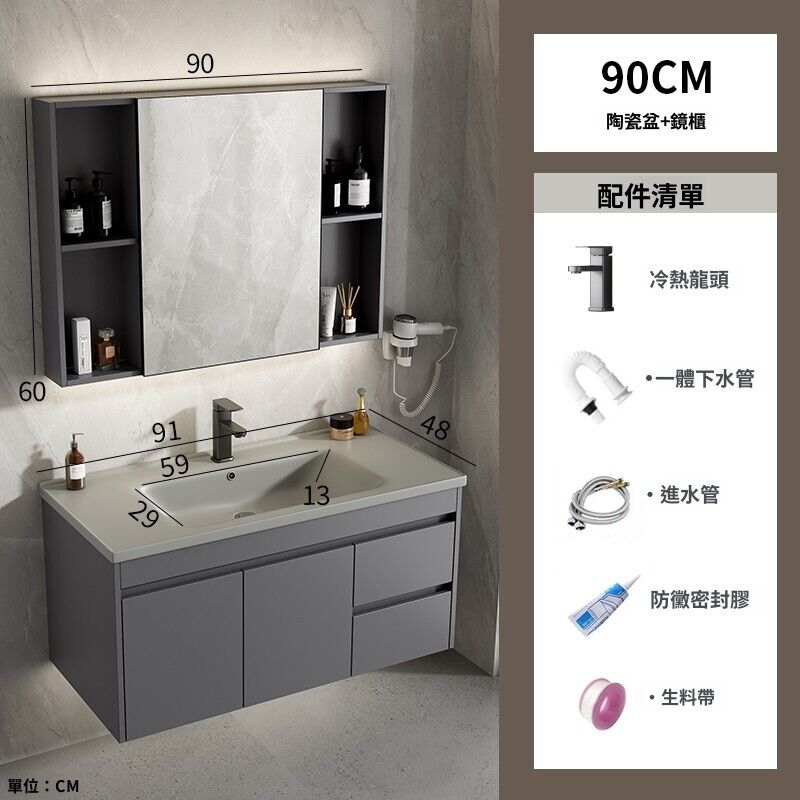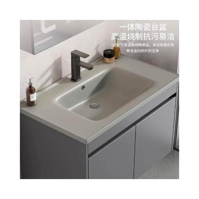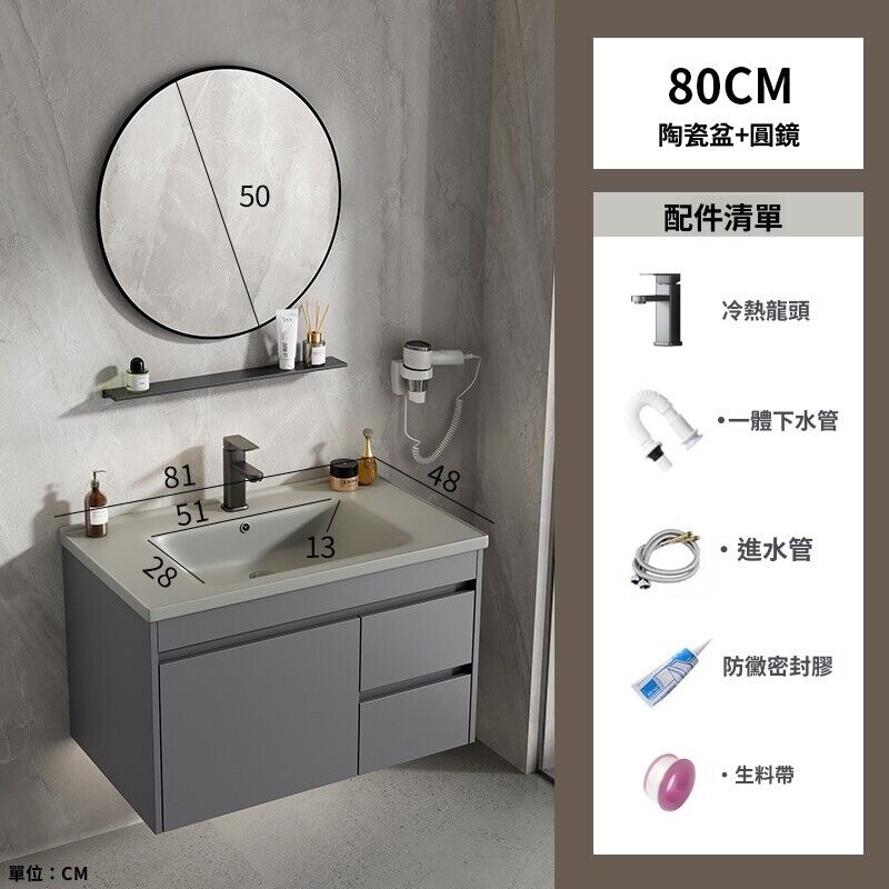 掛墻式浴室櫃組合陶瓷洗手盆家用灰色洗臉盆小戶型衛生間洗漱臺池