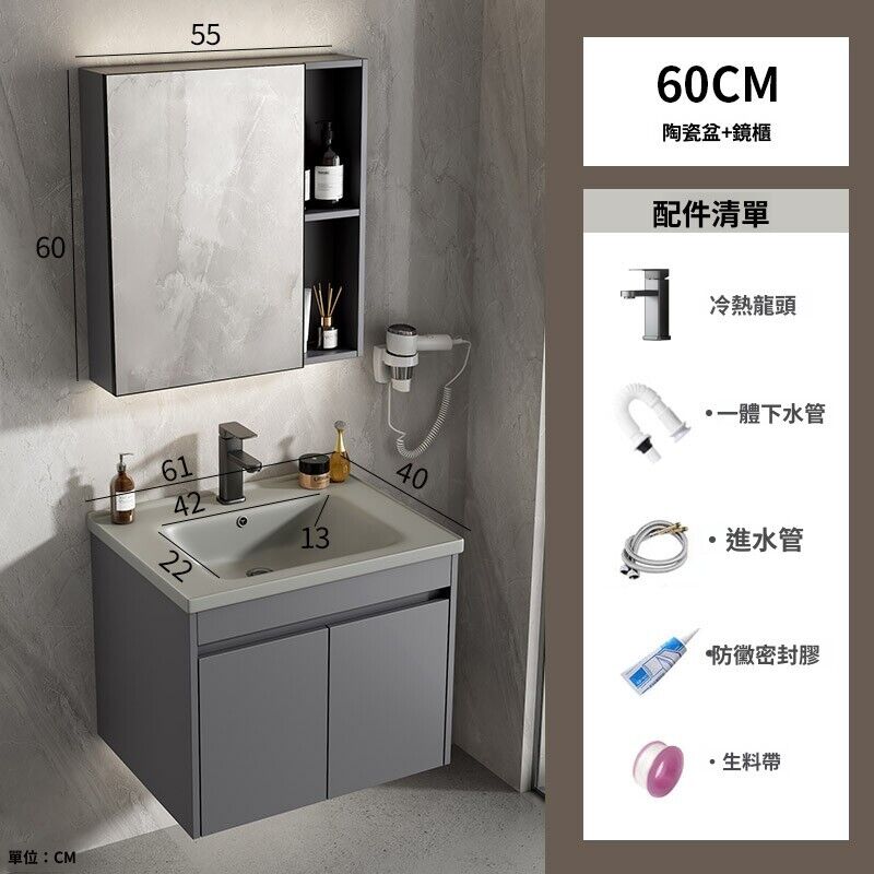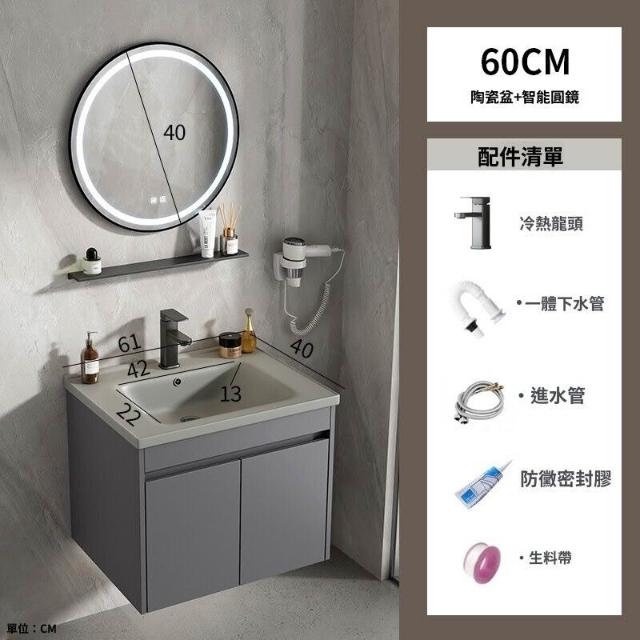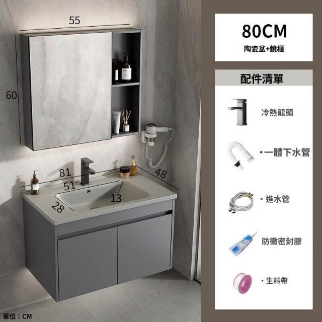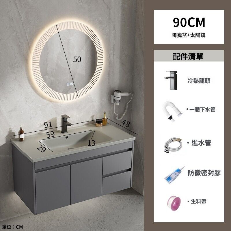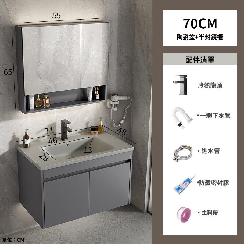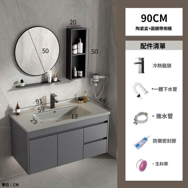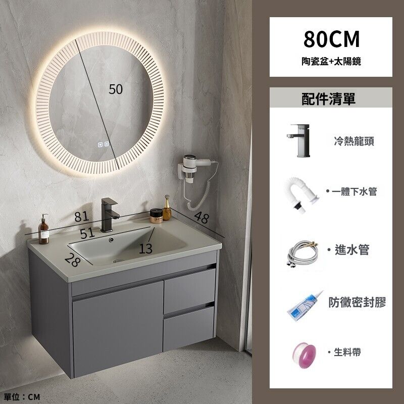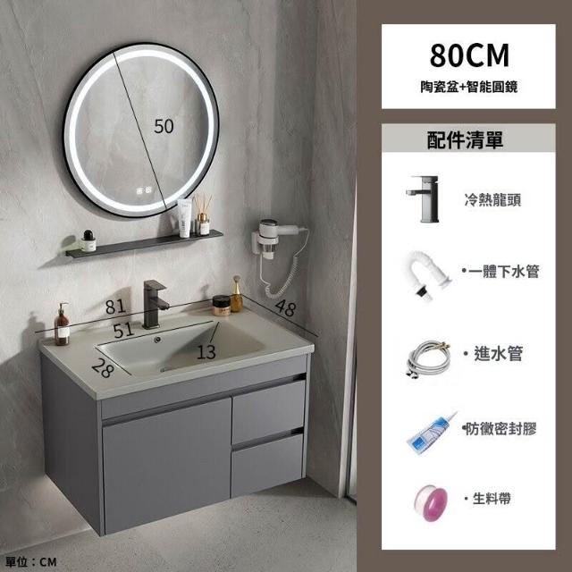 掛墻式浴室櫃組合陶瓷洗手盆家用灰色洗臉盆小戶型衛生間洗漱臺池