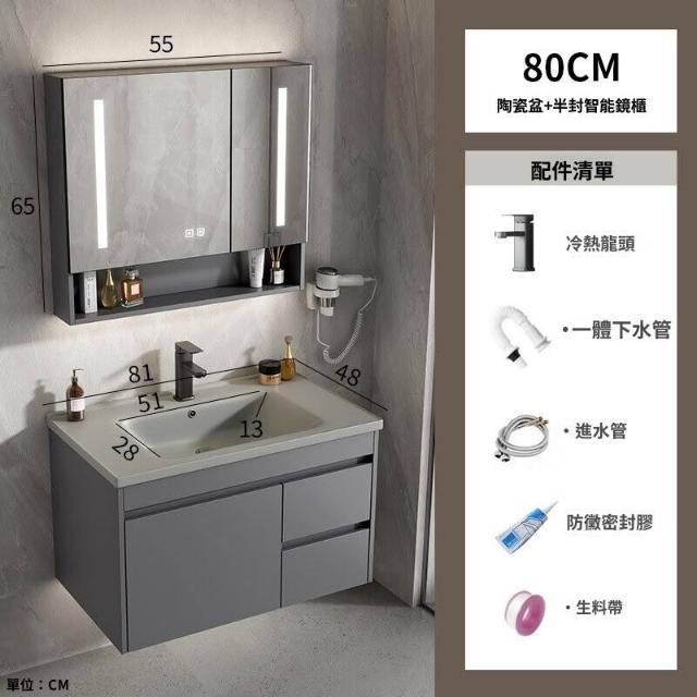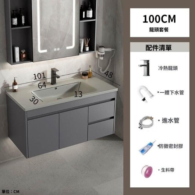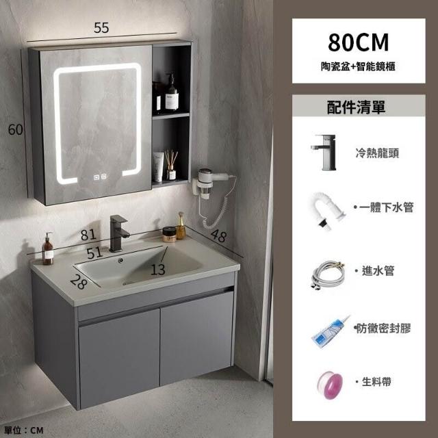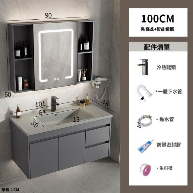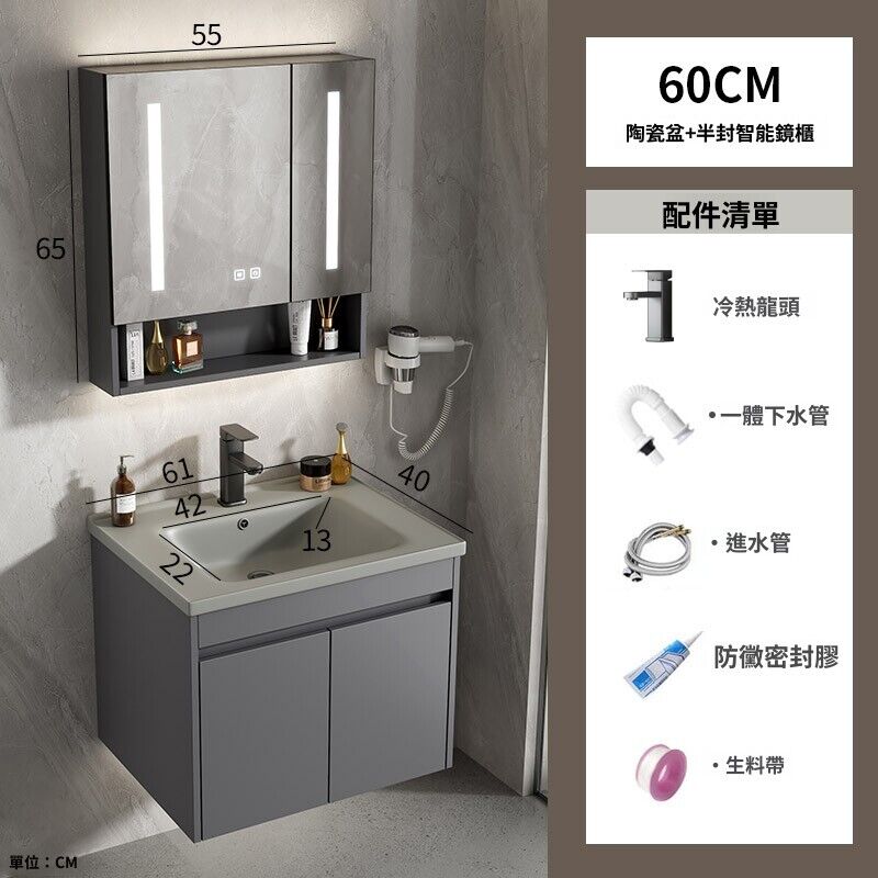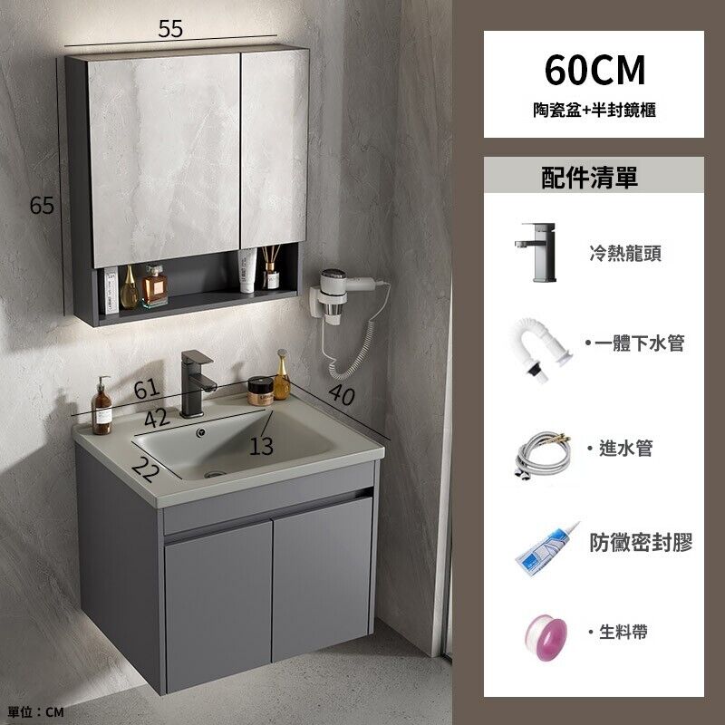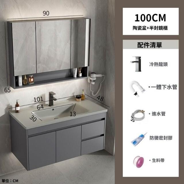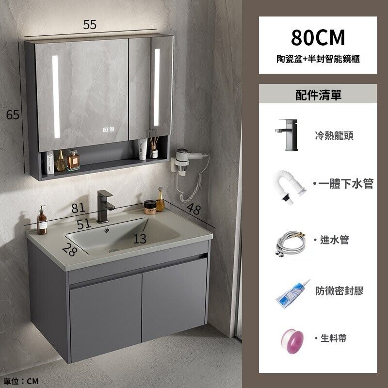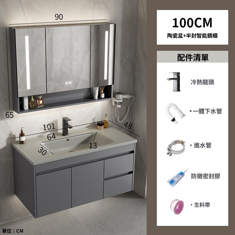 掛墻式浴室櫃組合陶瓷洗手盆家用灰色洗臉盆小戶型衛生間洗漱臺池