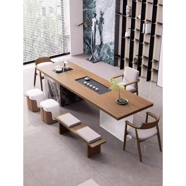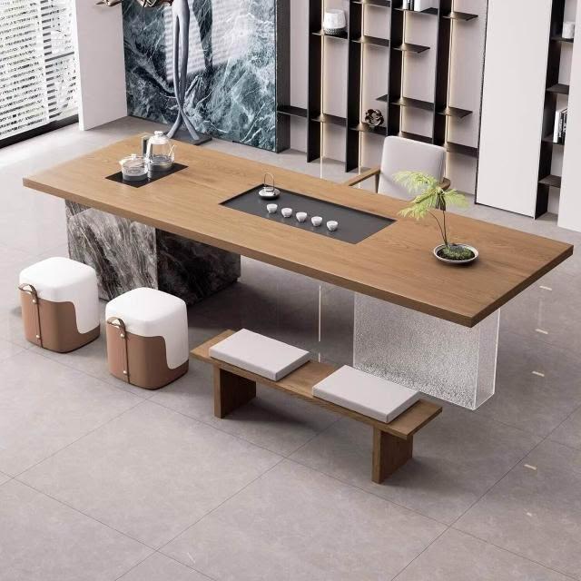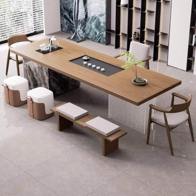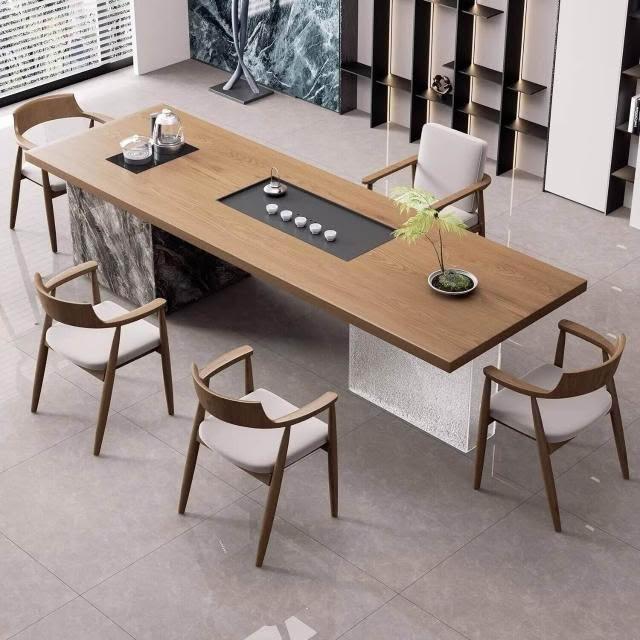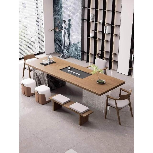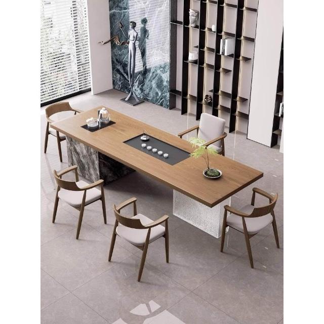 現代簡約實木大板島臺茶桌椅組合老板辦公室茶幾茶臺輕奢高級感