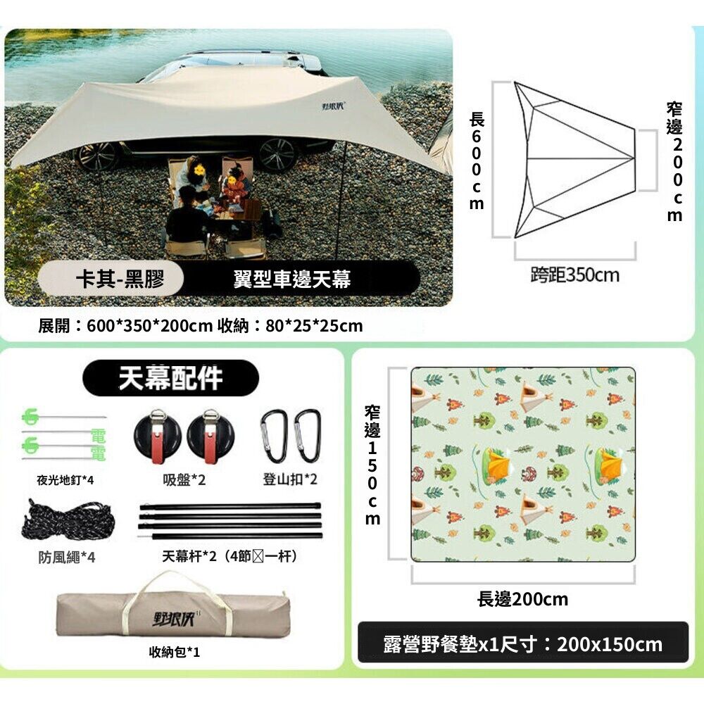 車邊天幕側邊帳篷車載suv汽車側面車頂越野車側帳遮陽棚