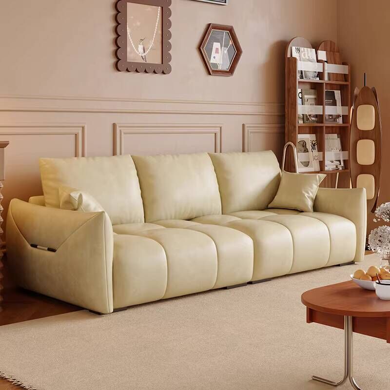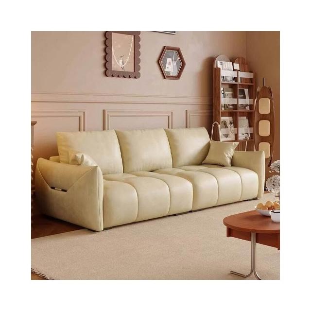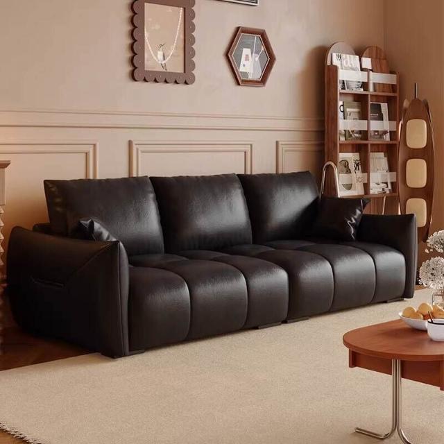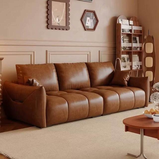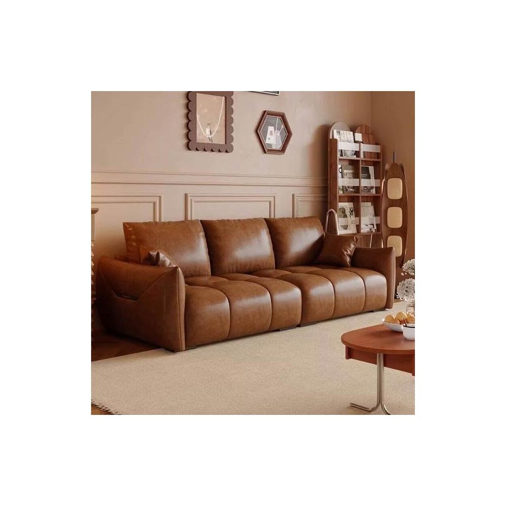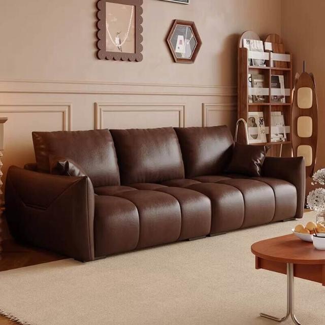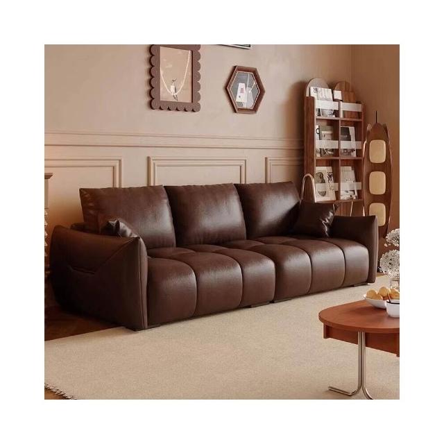 復古油蠟皮沙發現代簡約客廳大小戶型直排三人位做舊中古風沙發