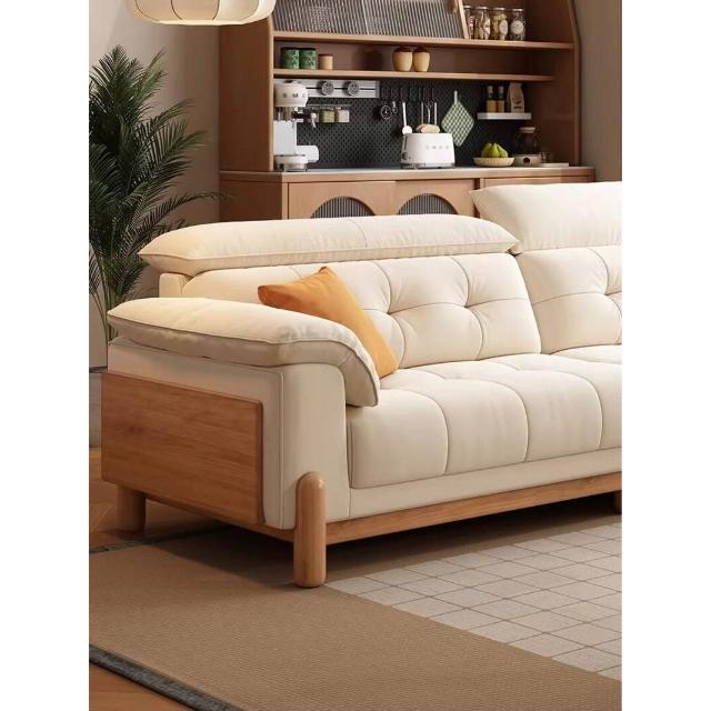 奶油中古風實木布藝沙發小戶型現代客廳簡約雪尼爾棉麻可拆洗沙發