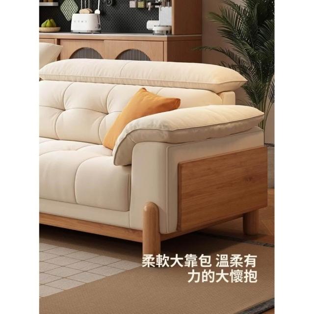 奶油中古風實木布藝沙發小戶型現代客廳簡約雪尼爾棉麻可拆洗沙發