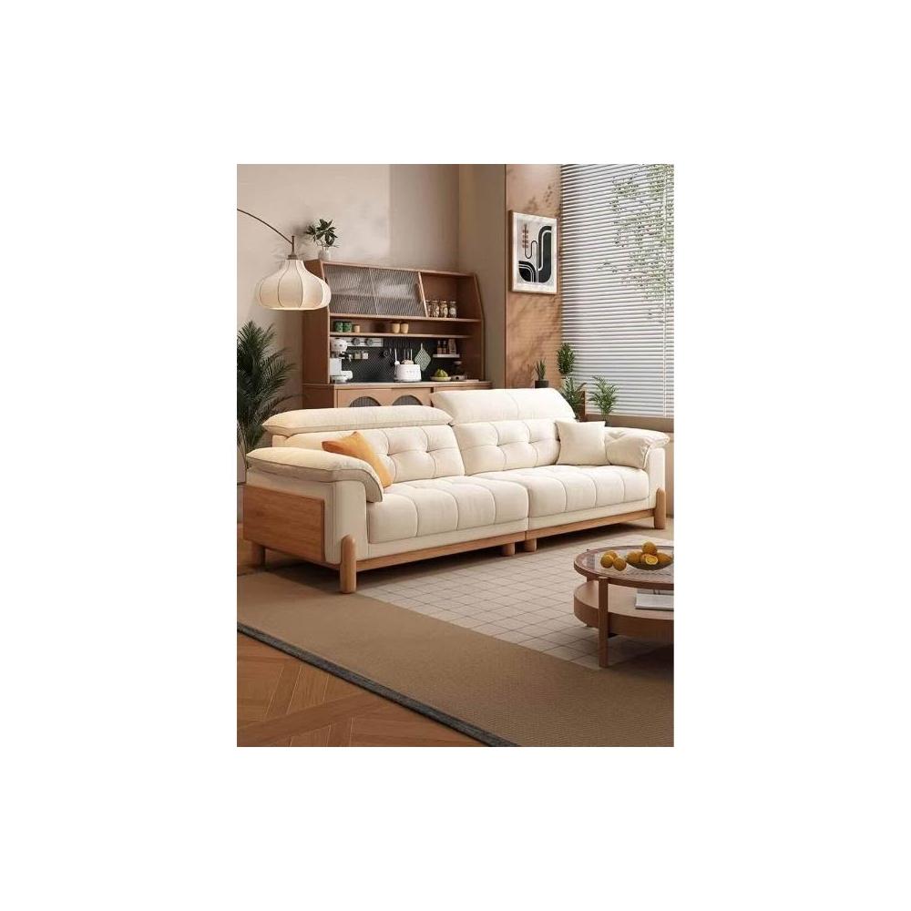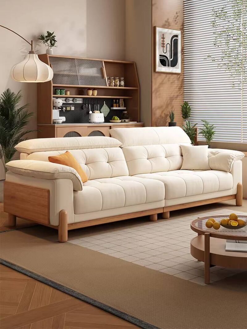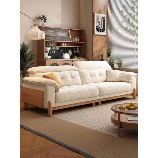 奶油中古風實木布藝沙發小戶型現代客廳簡約雪尼爾棉麻可拆洗沙發