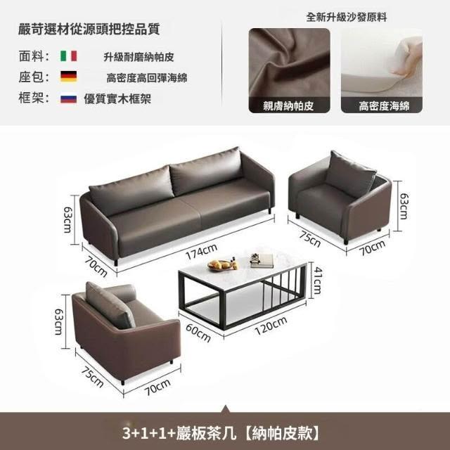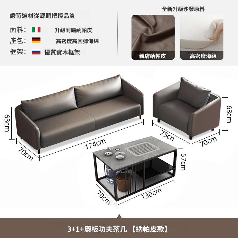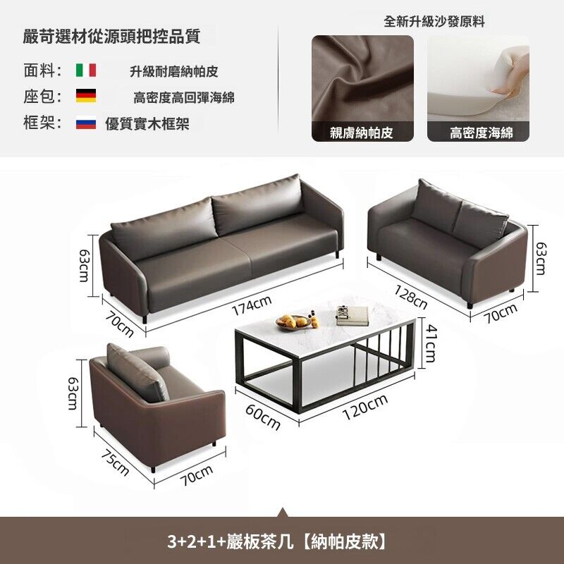 簡約辦公沙發辦公室商務接待室休息洽談三人位真皮小戶型茶幾組合