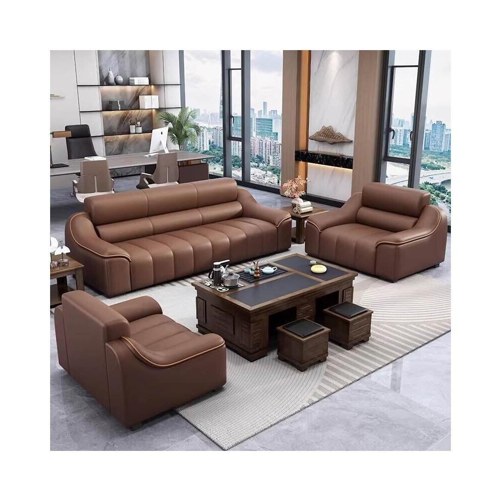 辦公室沙發接待區茶幾組合一體式簡約現代真皮商務三人位中式會客