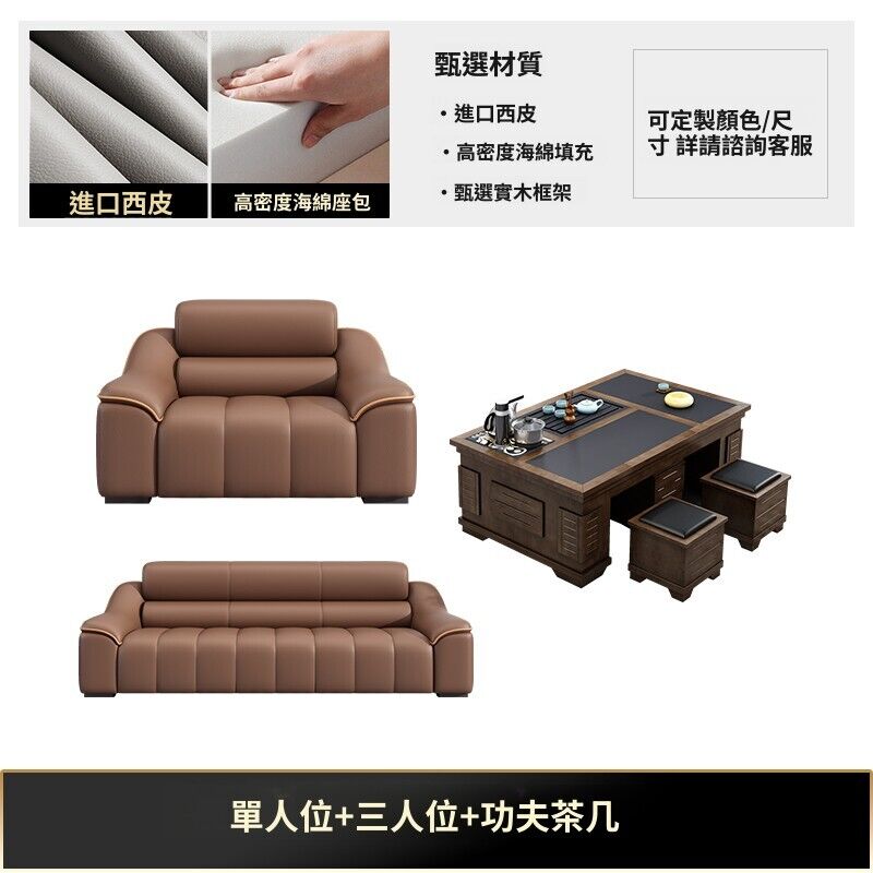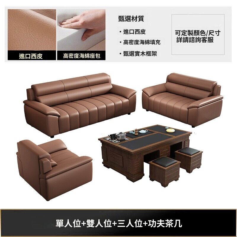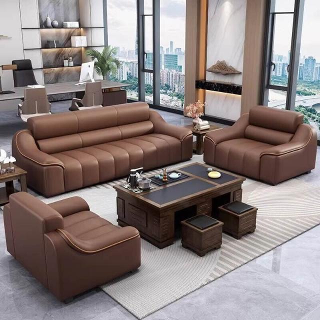辦公室沙發接待區茶幾組合一體式簡約現代真皮商務三人位中式會客