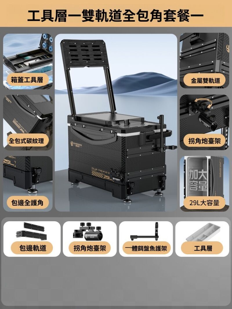 29升防刮釣箱全套新款多功能釣魚箱魚桶垂釣競技釣箱