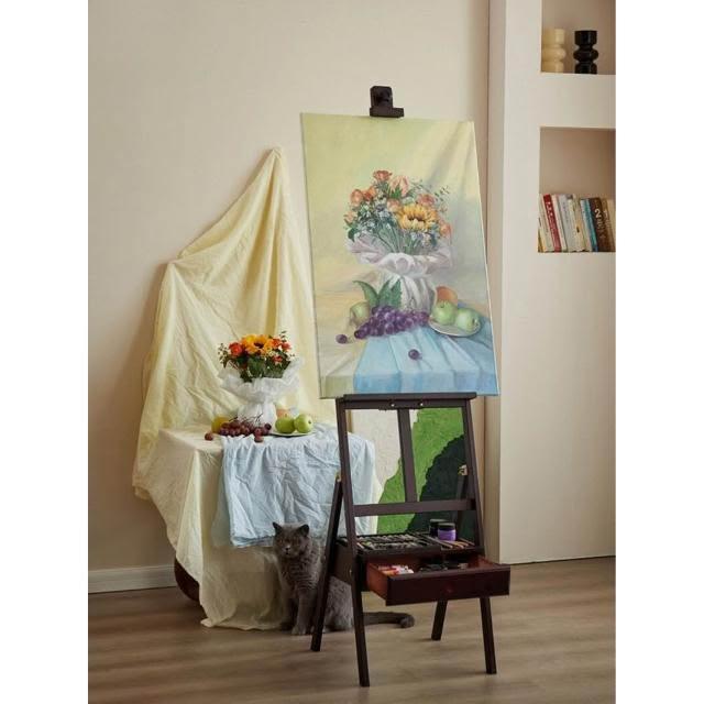 復古抽屜式成人畫室專業藝術畫架美術生專用4K2K畫板油畫架支架式兒童丙烯顏料畫畫工具素描套裝榉木畫架