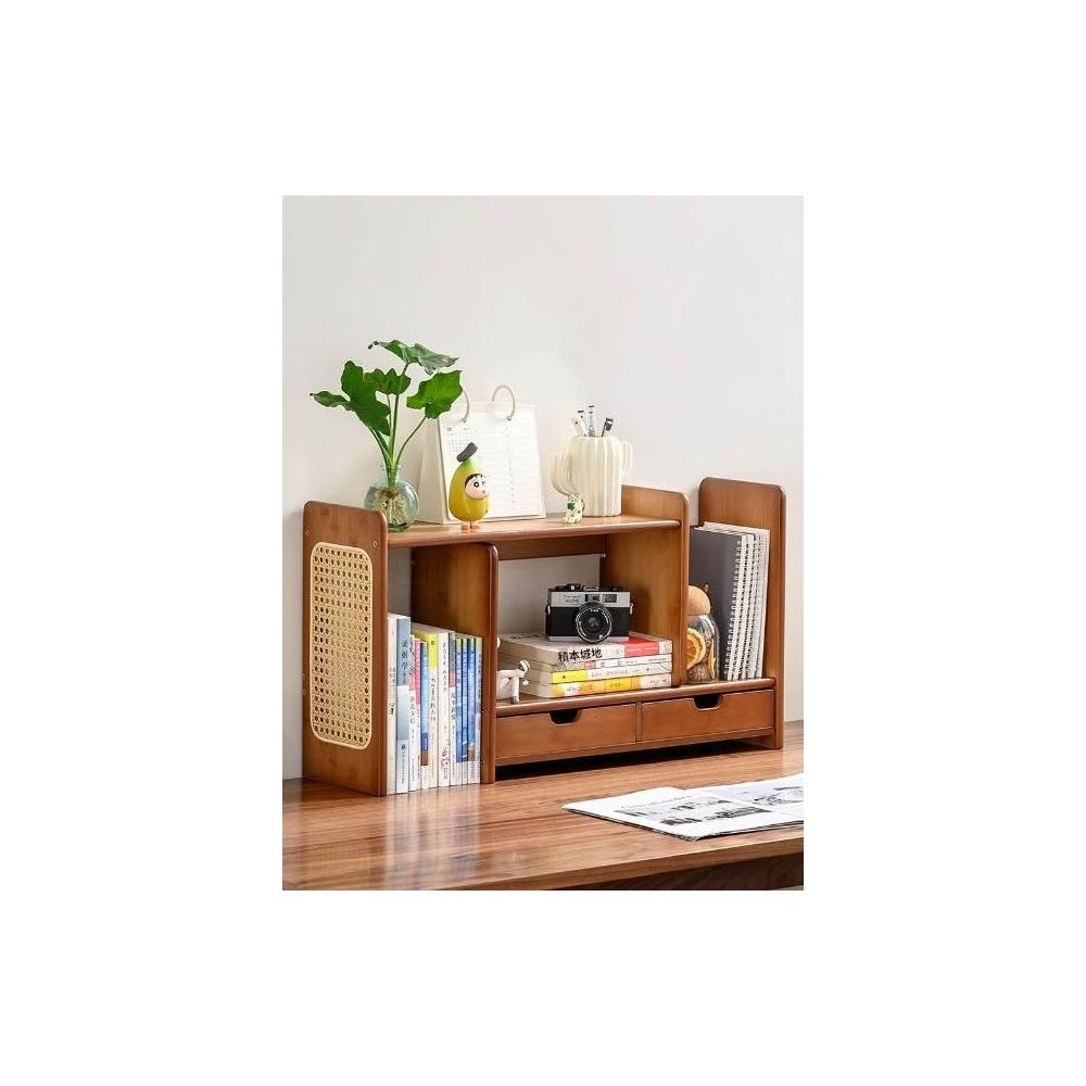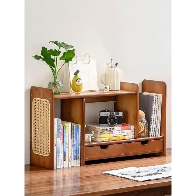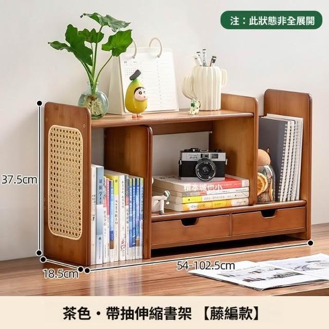 藤編書架桌面置物架可伸縮桌上整理架實用多層書櫃簡約書本收納架