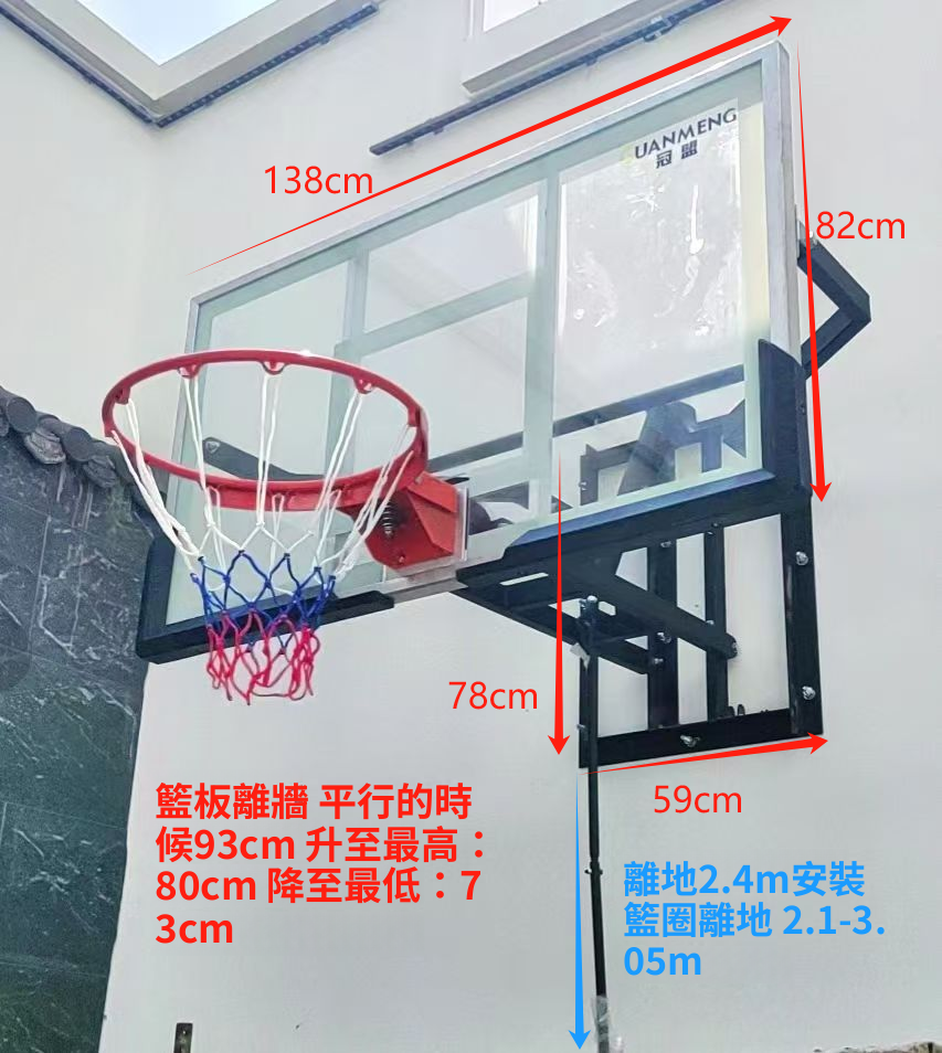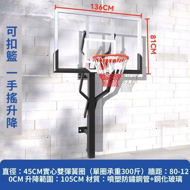 成人掛壁式籃球框手搖升降籃板培訓戶外電動升降籃球圈室內籃球架