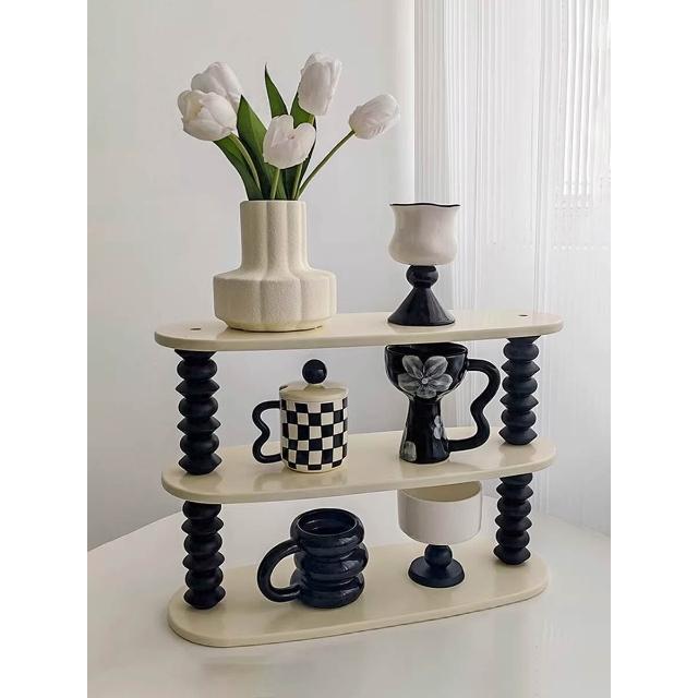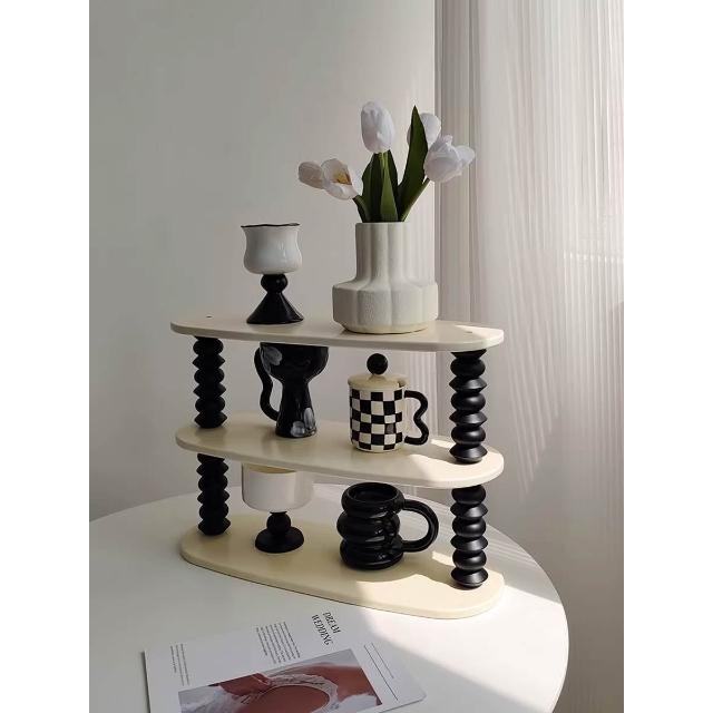 生活復古風木質杯子收納架展示架家用桌面化妝品整理多層置物架