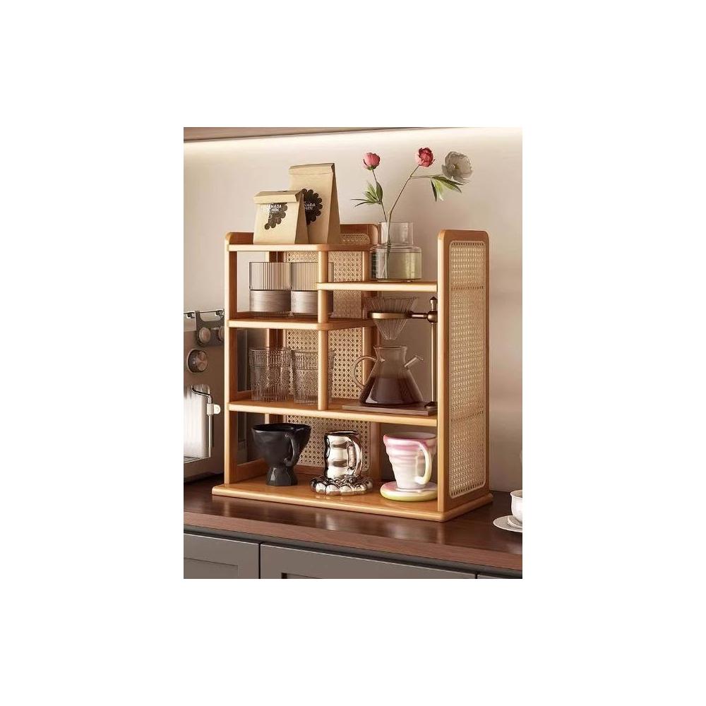 日式桌面置物架廚房簡約杯架收納架原木風水杯馬克杯多層展示架子