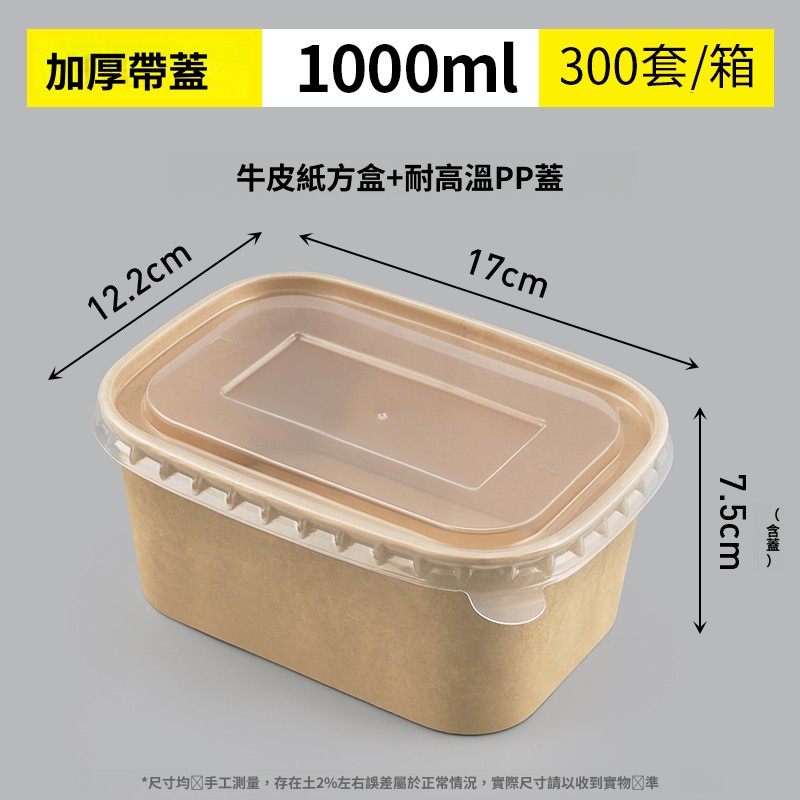 一次性餐盒牛皮紙方盒加厚外賣打包盒便當快餐飯盒環保沙拉碗帶蓋