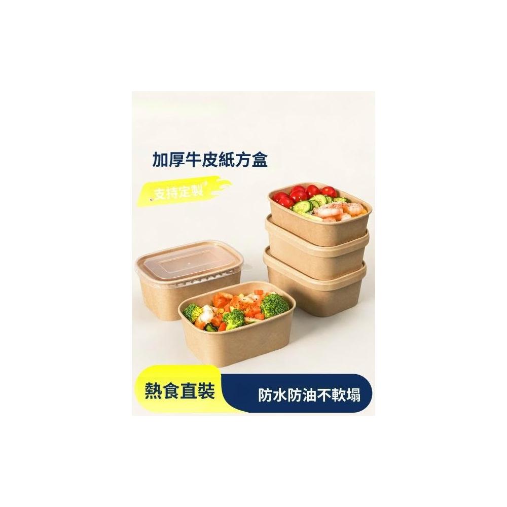 一次性餐盒牛皮紙方盒加厚外賣打包盒便當快餐飯盒環保沙拉碗帶蓋