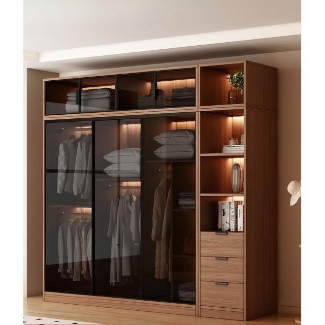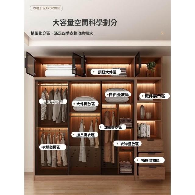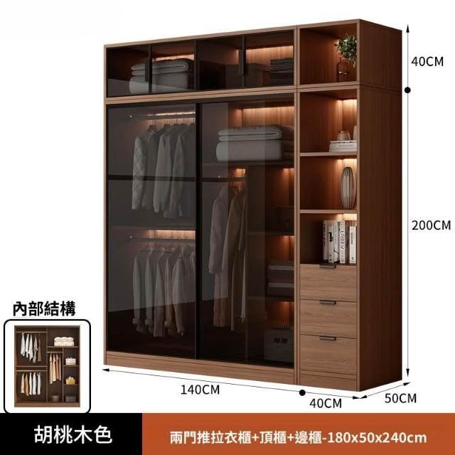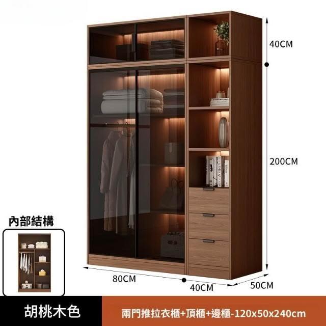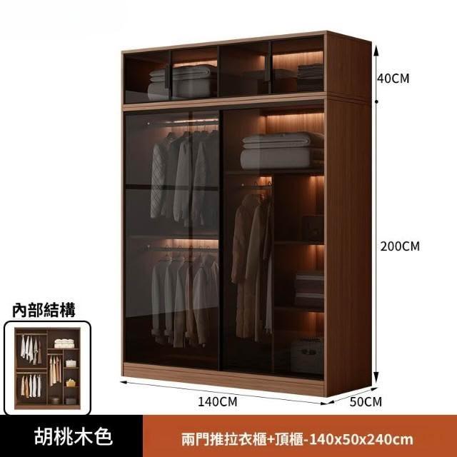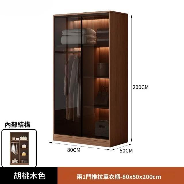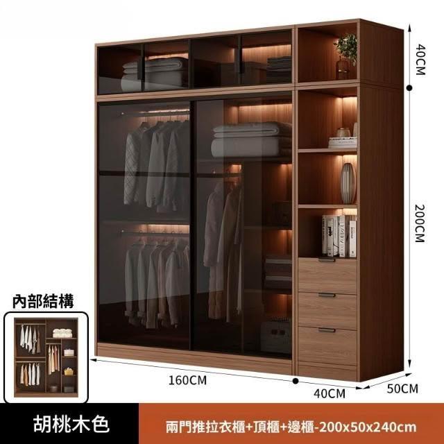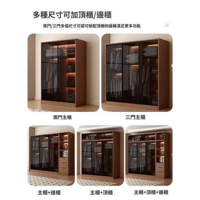 推拉移門胡桃色高級感玻璃門大衣櫃家用臥室實木現代簡約輕奢透明