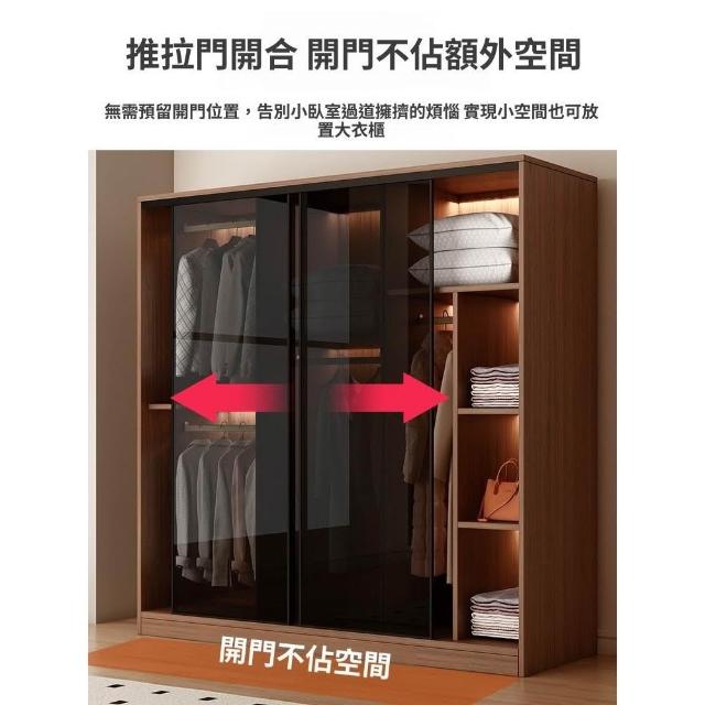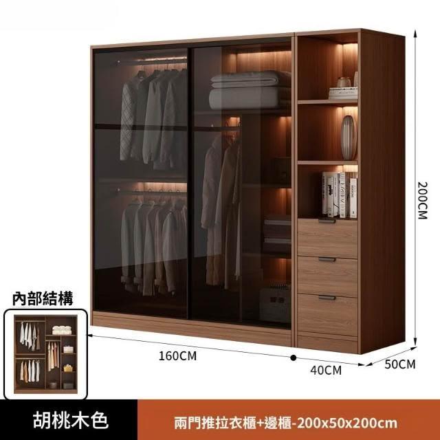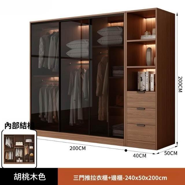 推拉移門胡桃色高級感玻璃門大衣櫃家用臥室實木現代簡約輕奢透明