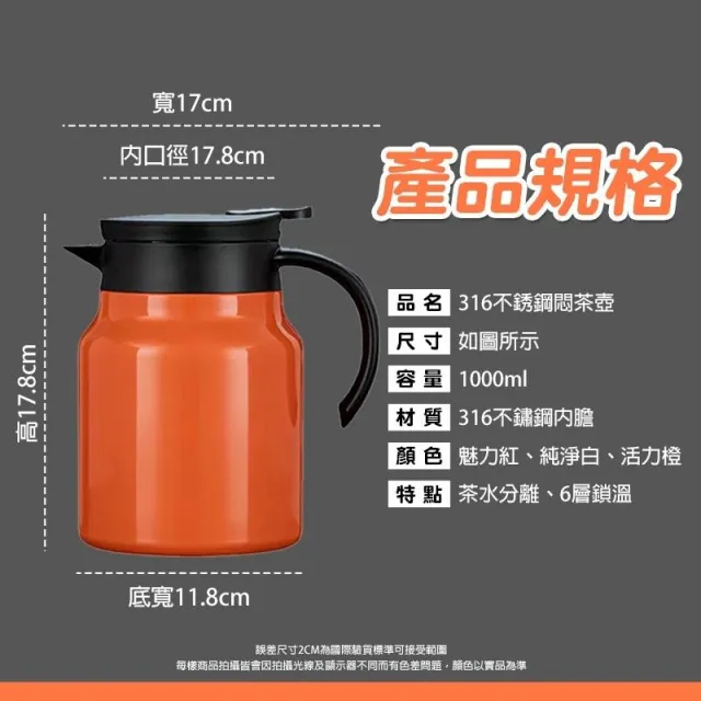 316不銹鋼泡茶壺1000ml 保溫茶壺 悶燒壺 燜燒壺 保溫壺 悶茶壺 熱水壺 交換禮物 聖誕節 萬聖節 禮品