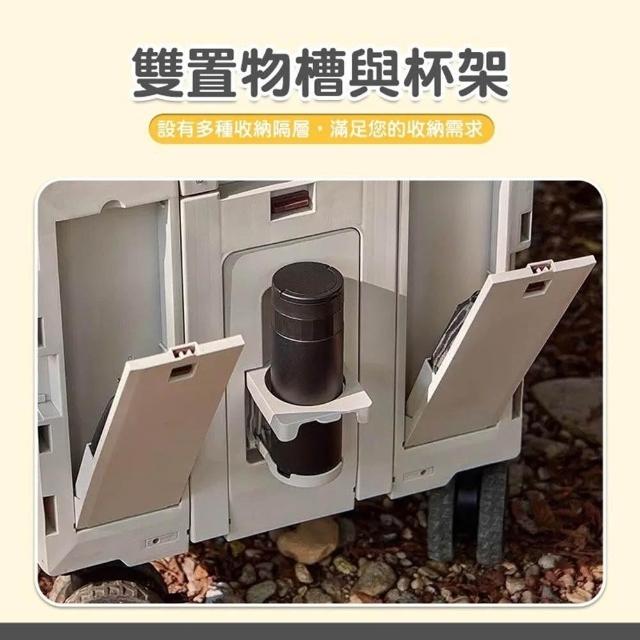 頂級100L 可側開 折疊收納手推車 可平拉 杯架 萬象4輪款