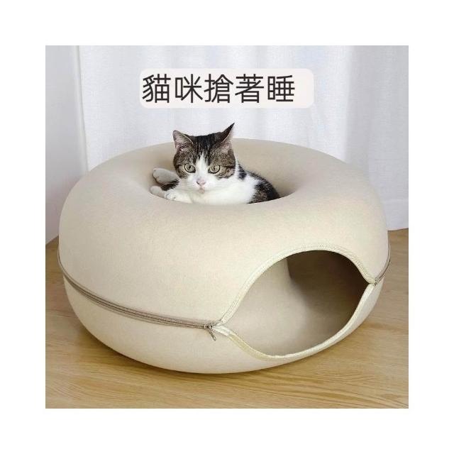 寵物奇城🐾🏚️ 猫窝甜甜圈玩具隧道四季通用封闭式兔子钻洞圈毛毡窝冬季双层猫窝