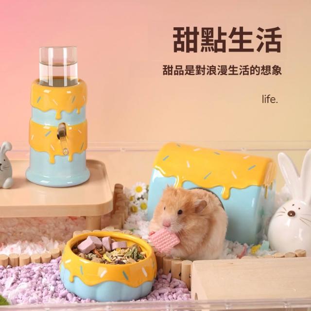 寵物奇城🐾🏚️倉鼠躲避屋陶瓷窩金絲熊食碗水壺樽飲水器立式食盆用品