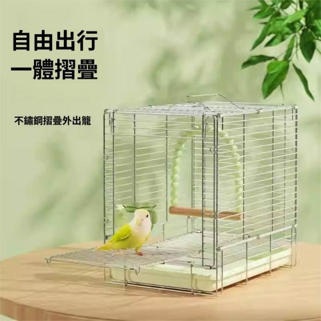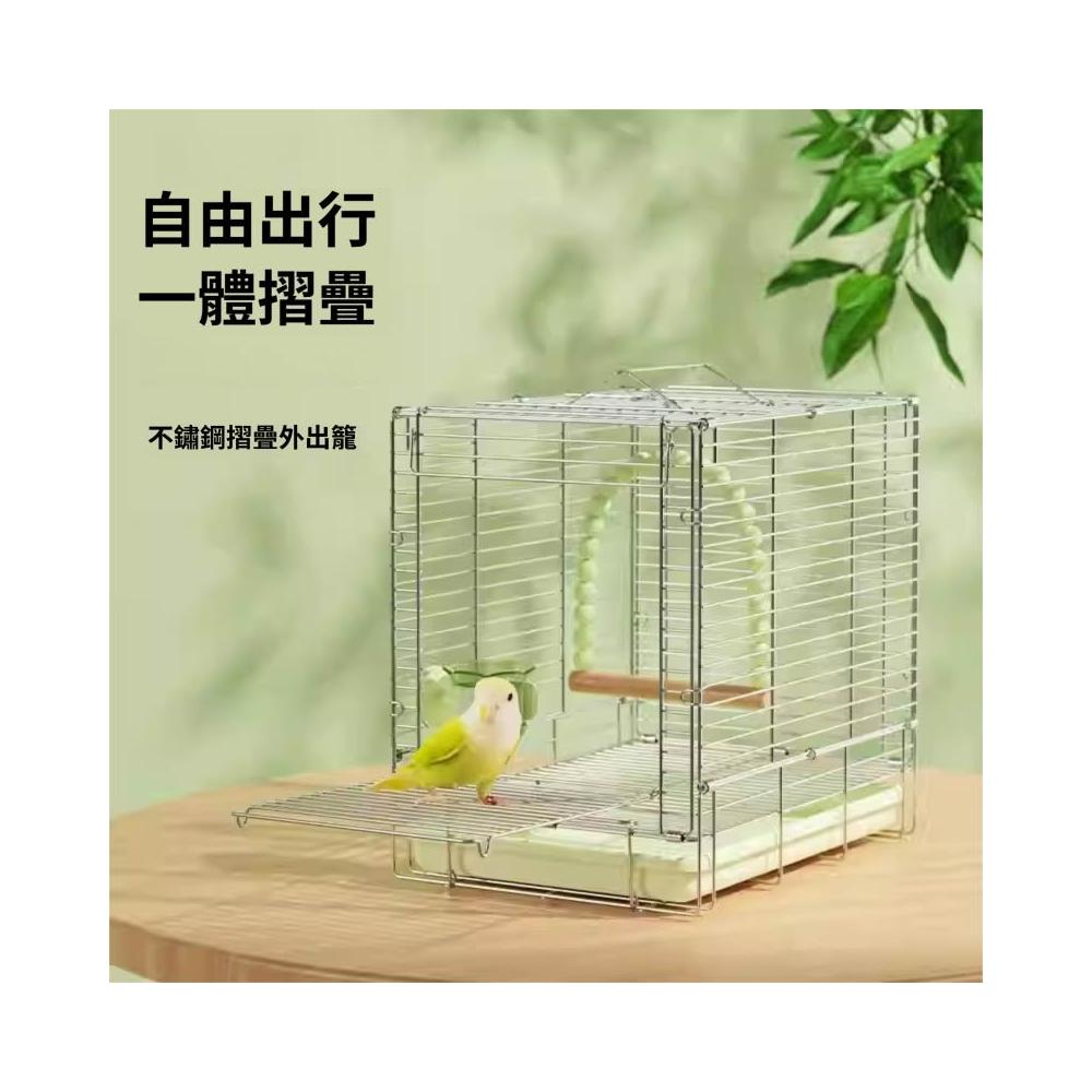 寵物奇城🐾🏚️ 鸚鵡304不鏽鋼折疊籠外出鳥籠子虎皮玄鳳牡丹運送便攜手提籠