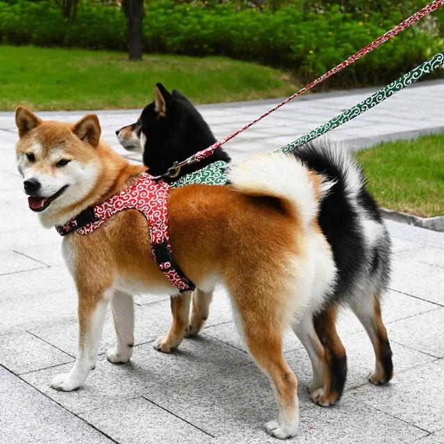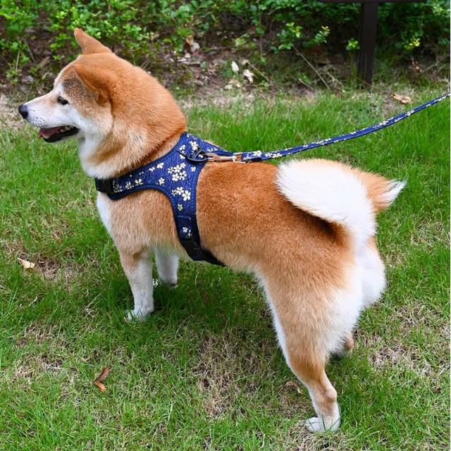 寵物奇城🐾🏚️ 和風燙金櫻花唐草紋胸背 柴犬胸背帶狗繩拉胸護胸牽引繩遛狗繩子