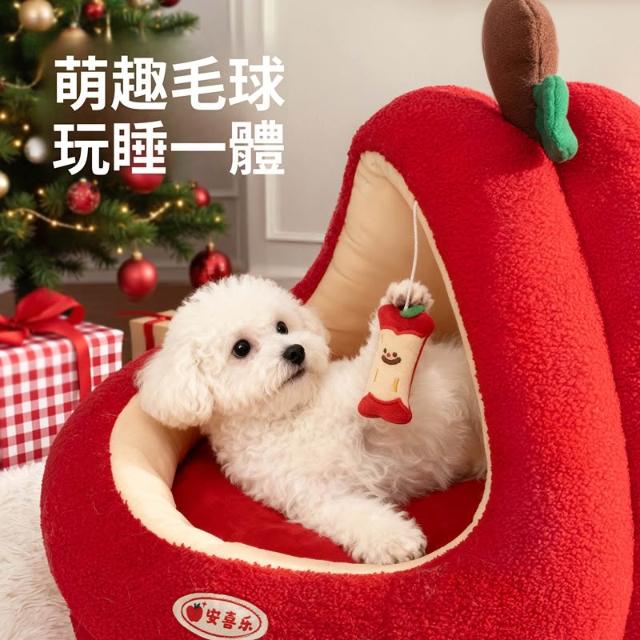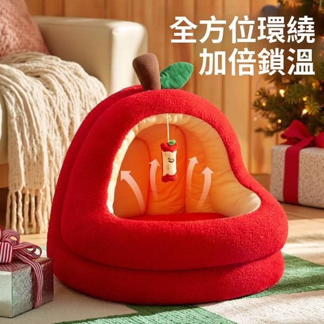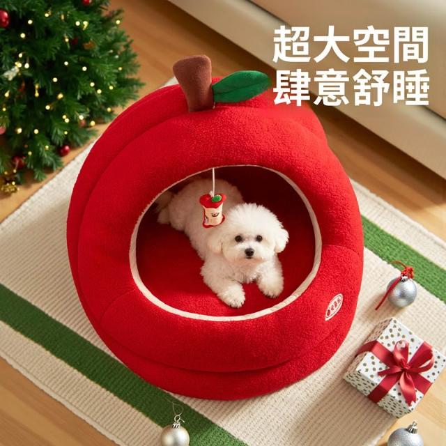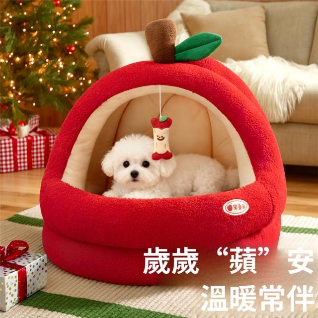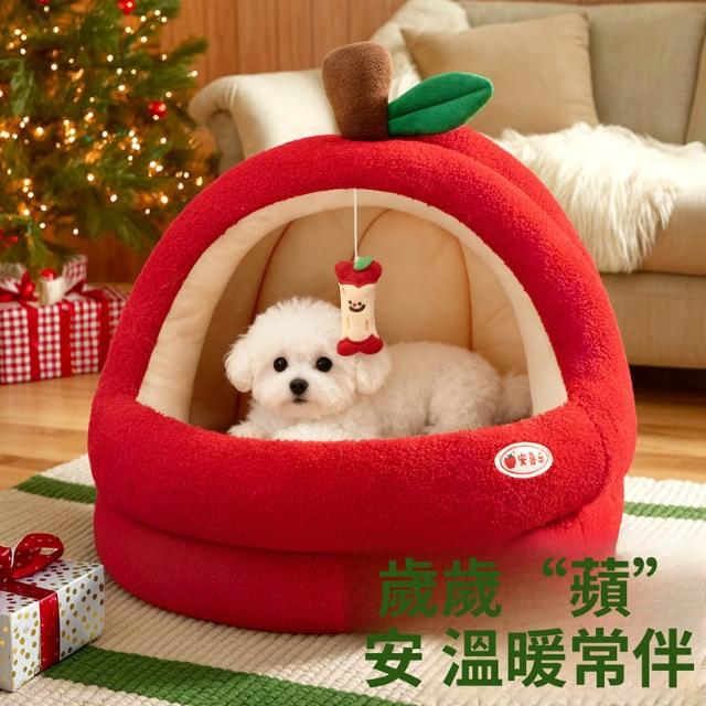 寵物奇城🐾🏚️ 蘋果狗窩冬加厚保暖小型犬比熊封閉式安全感寵物窩四季通用狗帳篷