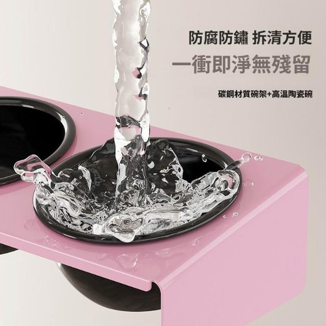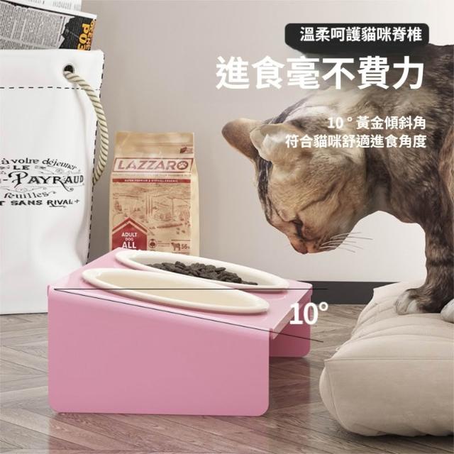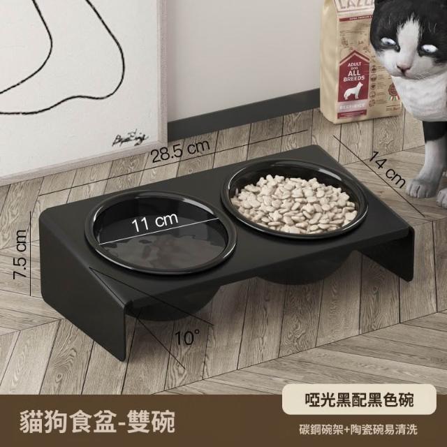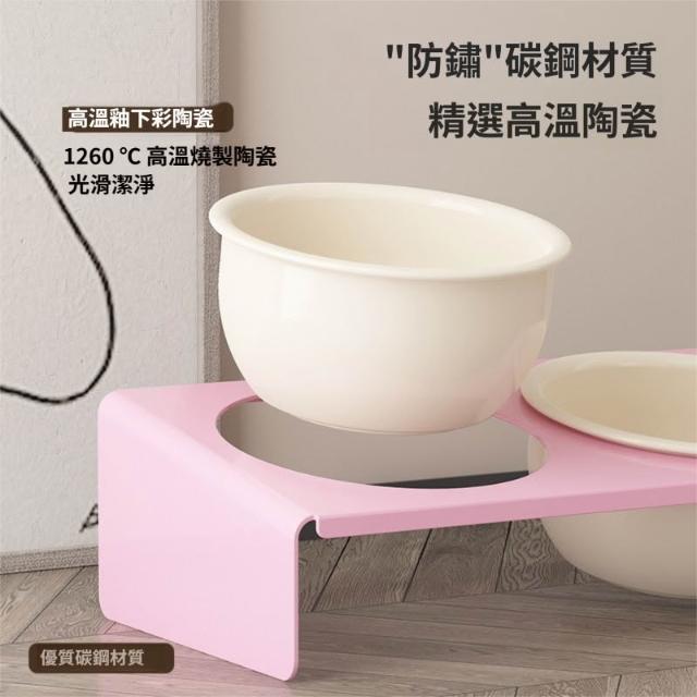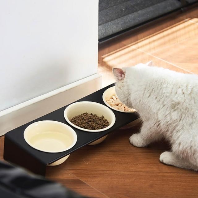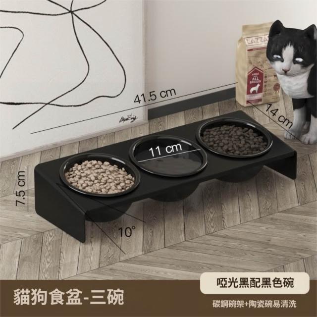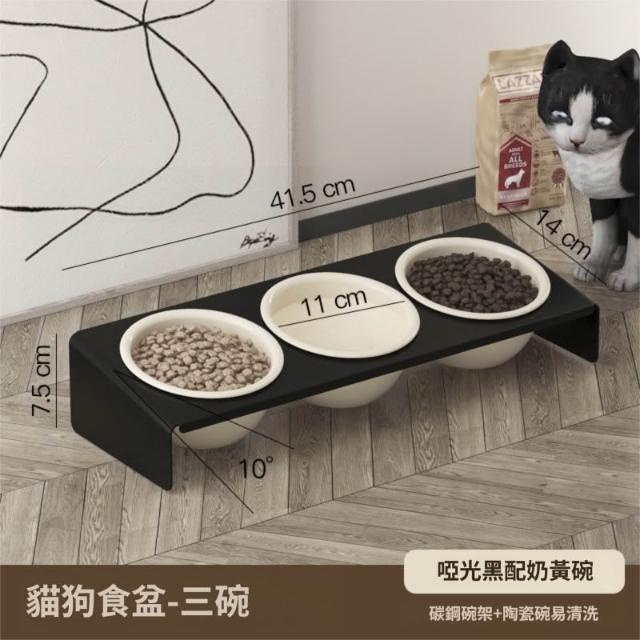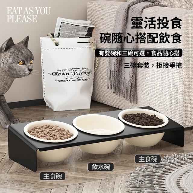 寵物奇城🐾🏚️ 貓碗陶瓷貓食盆碳鋼架寵物飯碗水碗一體貓咪糧碗專用三碗不易打翻