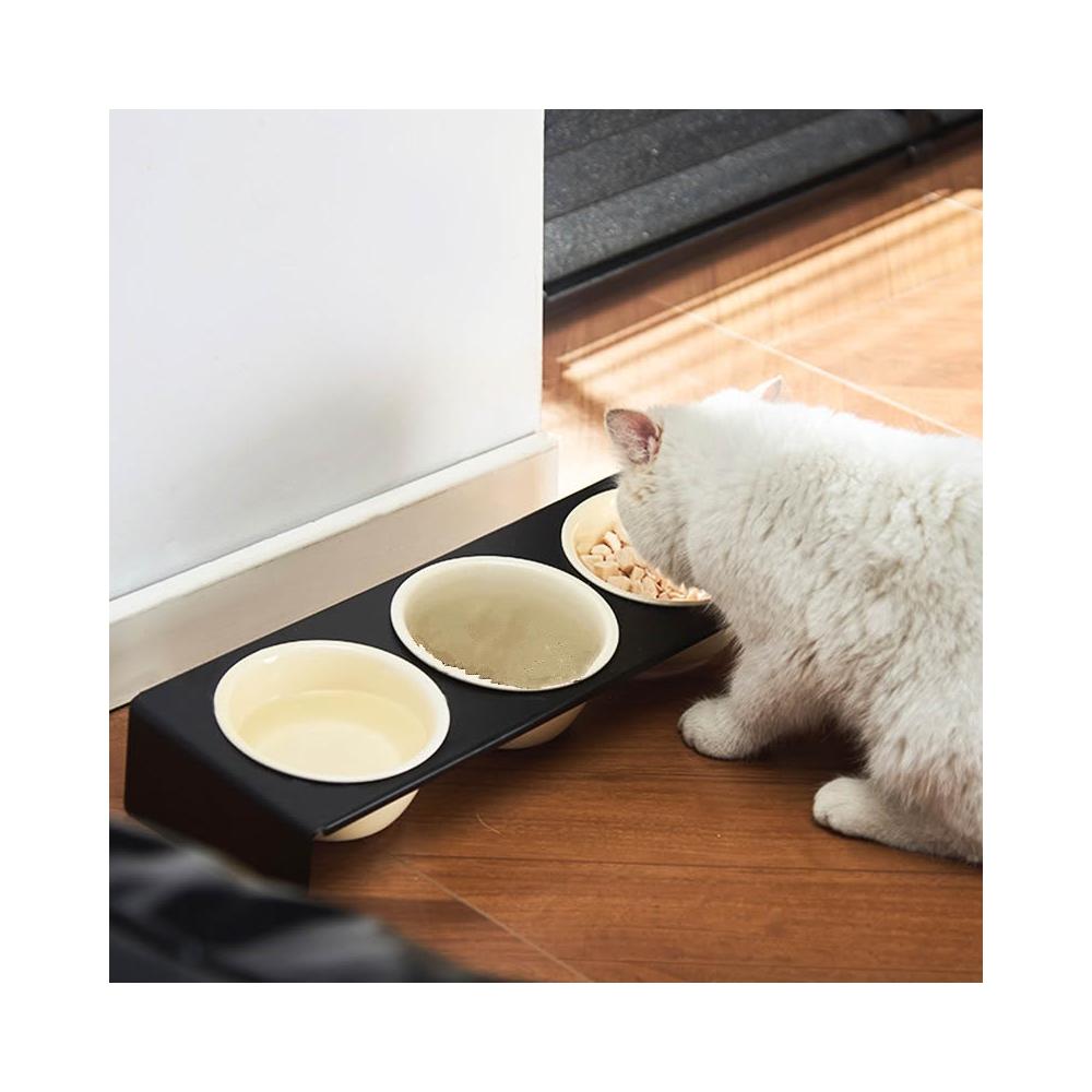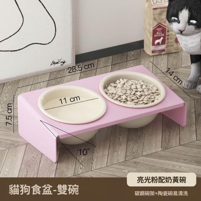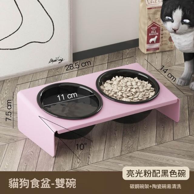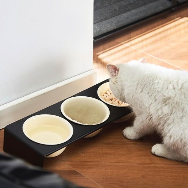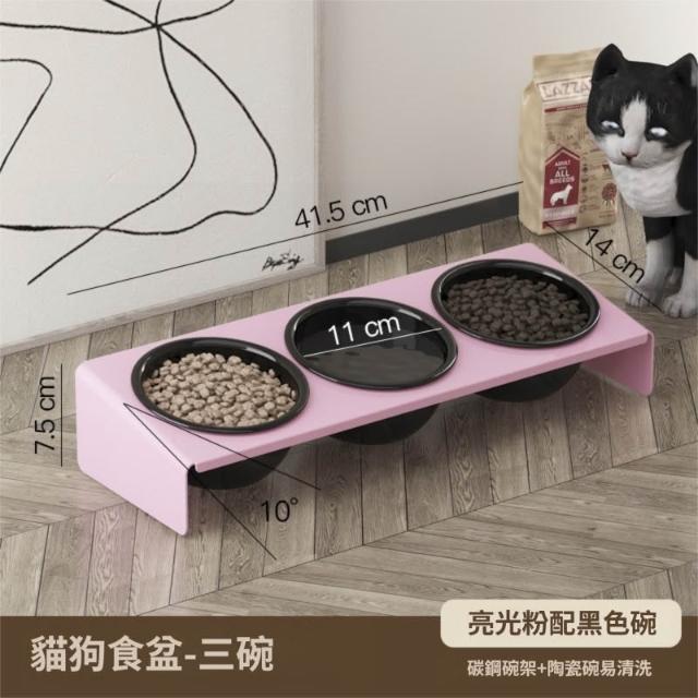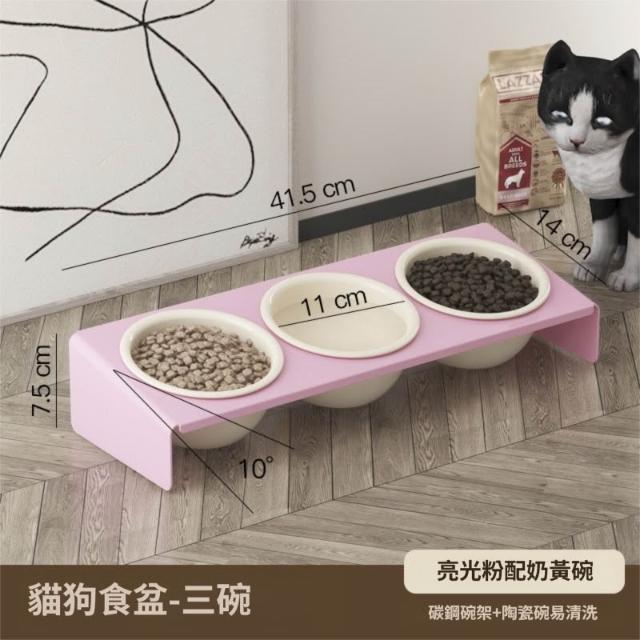 寵物奇城🐾🏚️ 貓碗陶瓷貓食盆碳鋼架寵物飯碗水碗一體貓咪糧碗專用三碗不易打翻