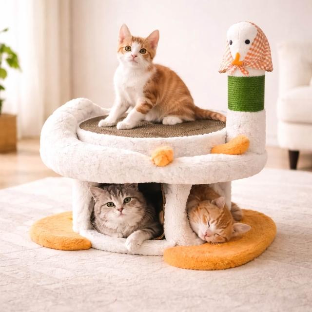 寵物奇城🐾🏚️ 「天鵝造型貓抓爬架|圓形劍麻抓板|多功能貓咪遊樂床|可承重8KG|小型貓休憩玩耍專用」