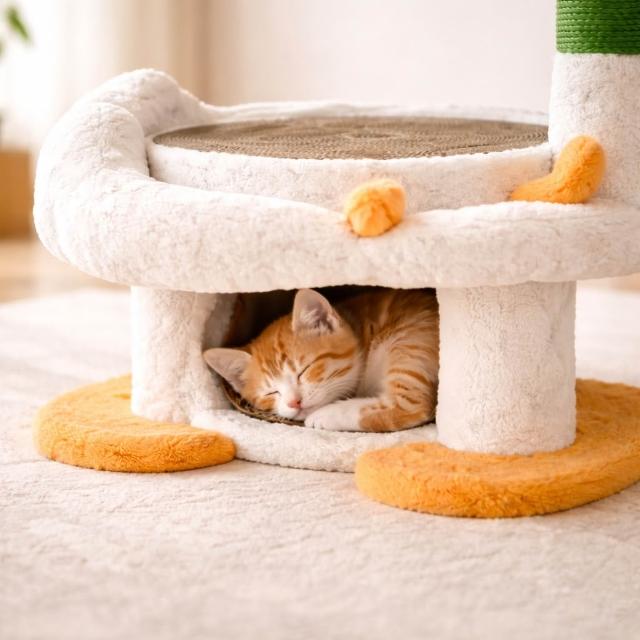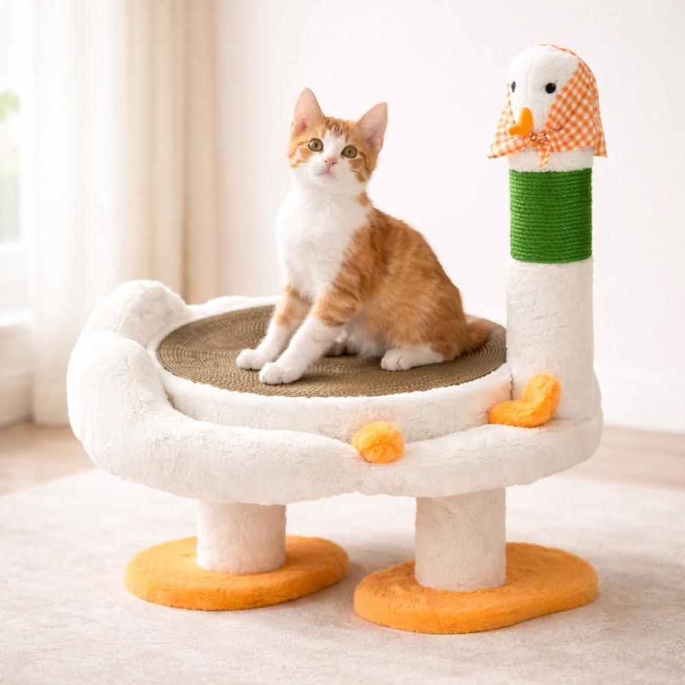 寵物奇城🐾🏚️ 「天鵝造型貓抓爬架|圓形劍麻抓板|多功能貓咪遊樂床|可承重8KG|小型貓休憩玩耍專用」