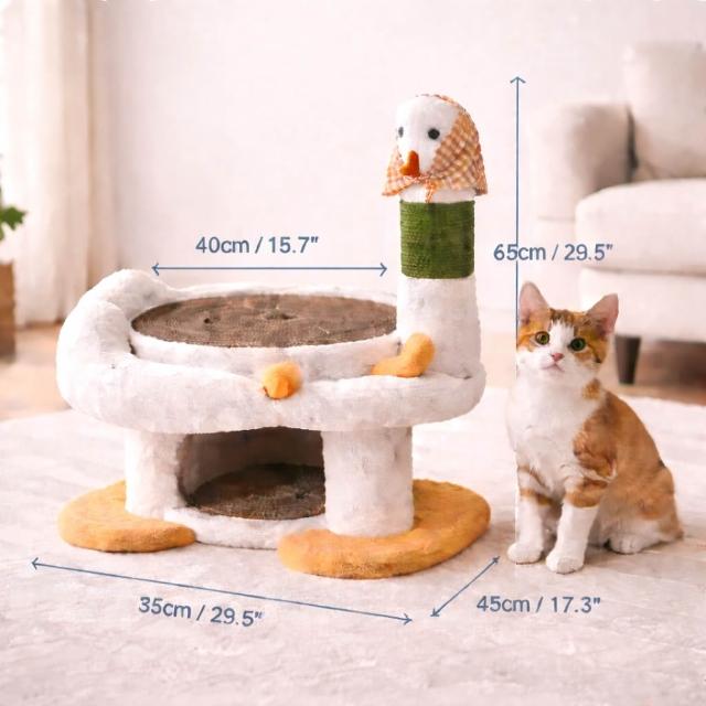 寵物奇城🐾🏚️ 「天鵝造型貓抓爬架|圓形劍麻抓板|多功能貓咪遊樂床|可承重8KG|小型貓休憩玩耍專用」
