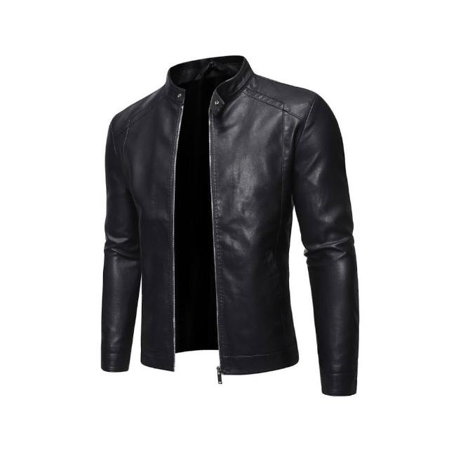 皮衣男新款機車中老年秋冬裝pu皮夾克外套加絨加厚保暖大尺碼男裝爸爸刷毛短版帥氣青年皮外套立領休閒修身免燙仿皮皮衣男裝外套