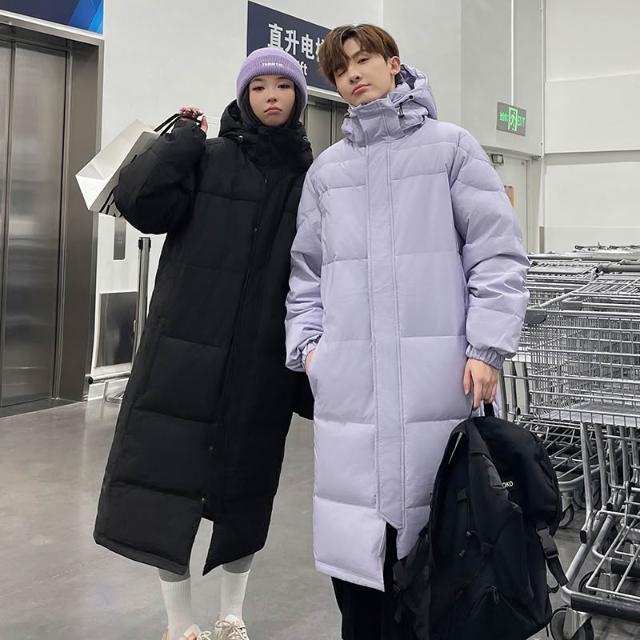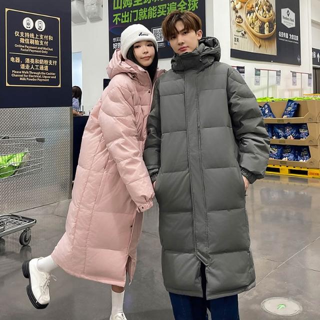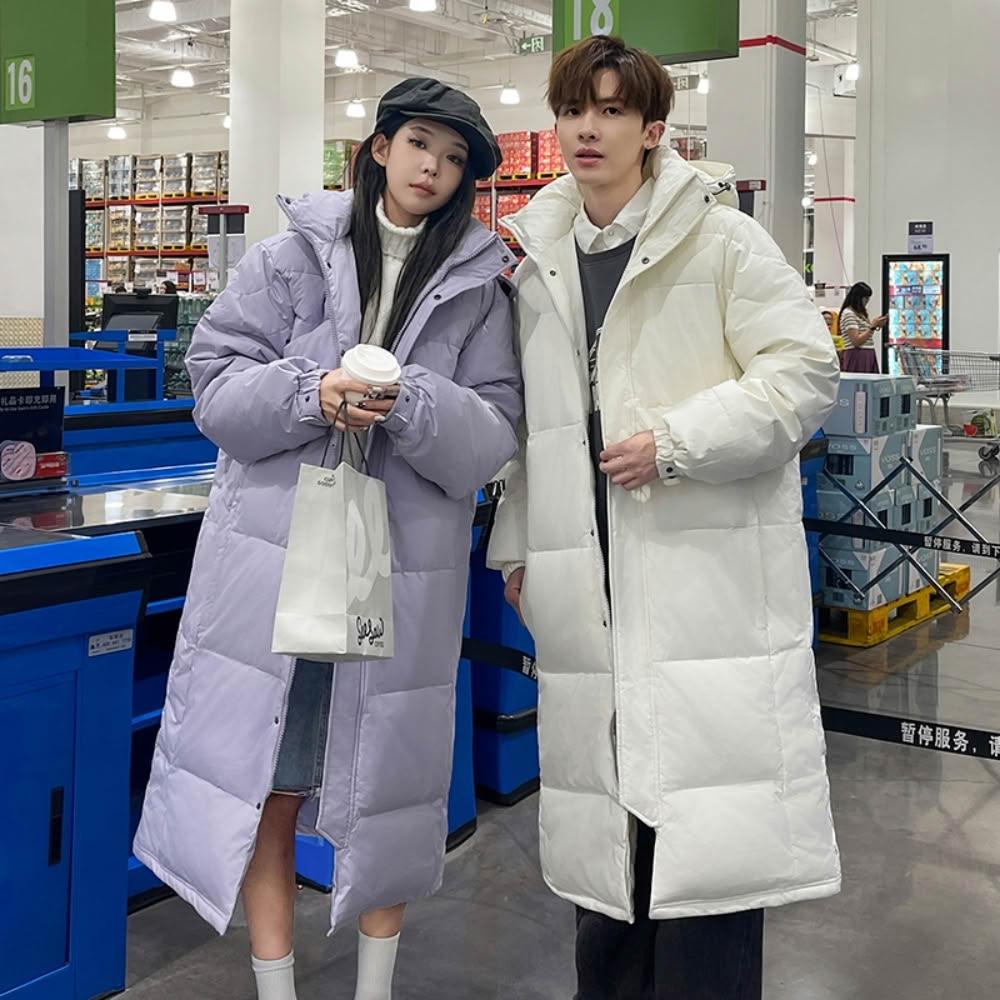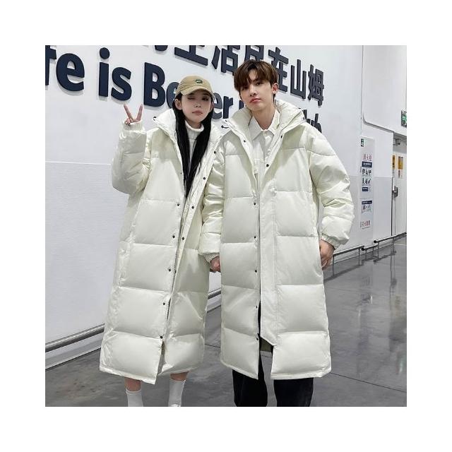 羽絨外套男冬季純色中長版保暖羽絨衣女生白鴨絨羽絨服加絨防寒衣防寒防風保暖登山服休閒百搭過膝情侶款外套加厚外穿雪山潮流大衣