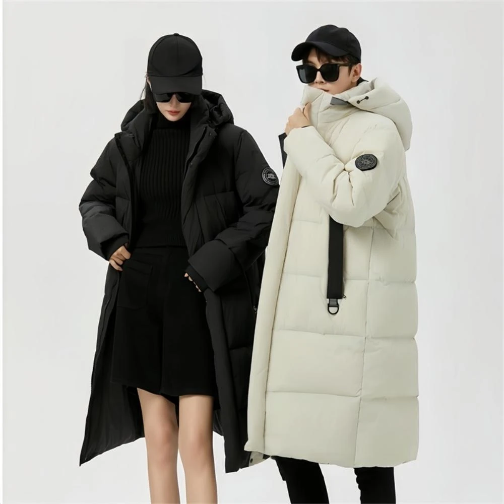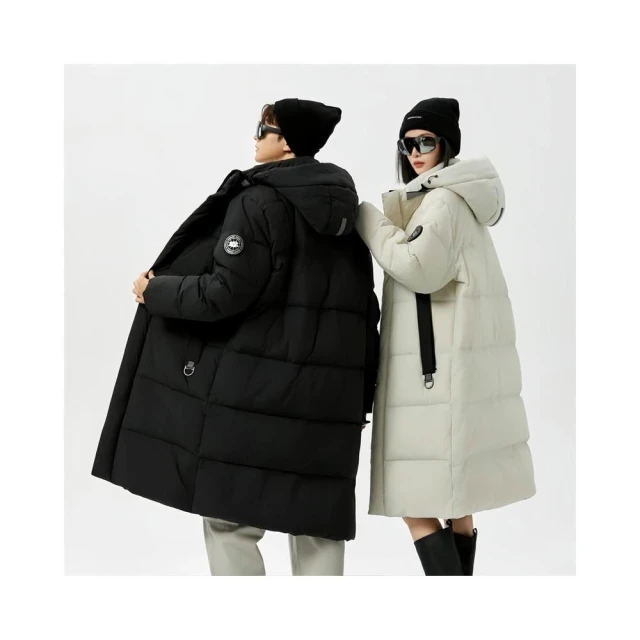 羽絨服男女同款中長版羽絨外套白鴨絨青春流行羽絨衣服冬季保暖隔熱加絨外套防風防水過膝青年冬天可脫卸帽外套保溫男女裝登山服