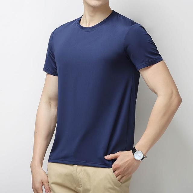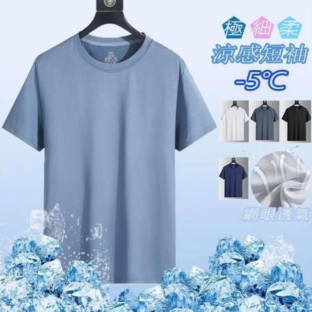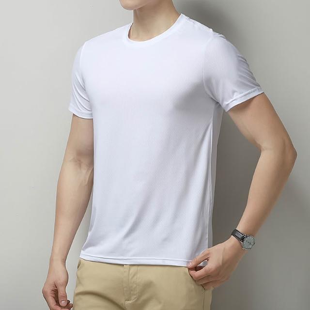 涼感衣男短袖夏季薄款純色簡約短T彈力寬鬆透氣T恤冰絲涼爽涼感衣夏天跑步健身速乾運動上衣圓領網眼百搭素色休閒衣服男士短袖