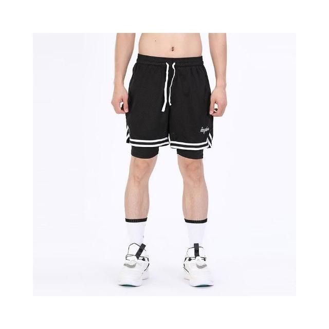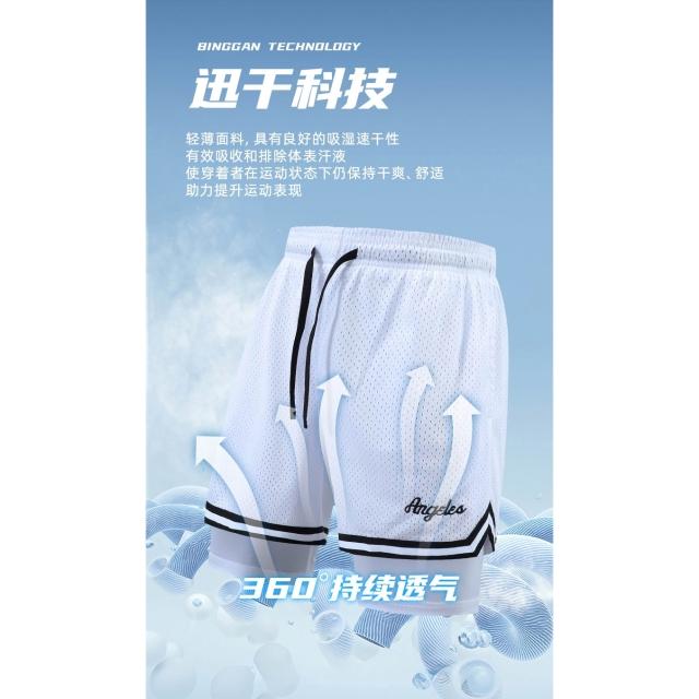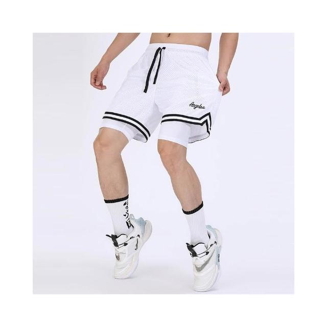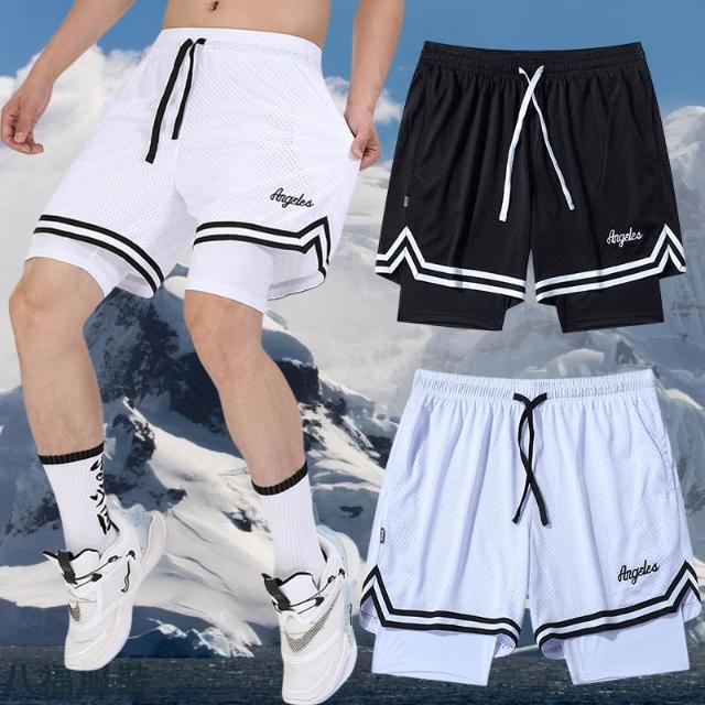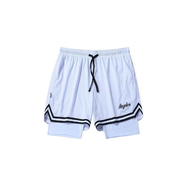 夏季戶外運動假兩件短褲吸濕排汗運動休閒短褲男透氣速乾薄款籃球跑步沙灘褲中大尺碼梭織田徑跑步褲子健身訓練海灘褲白色網眼直筒