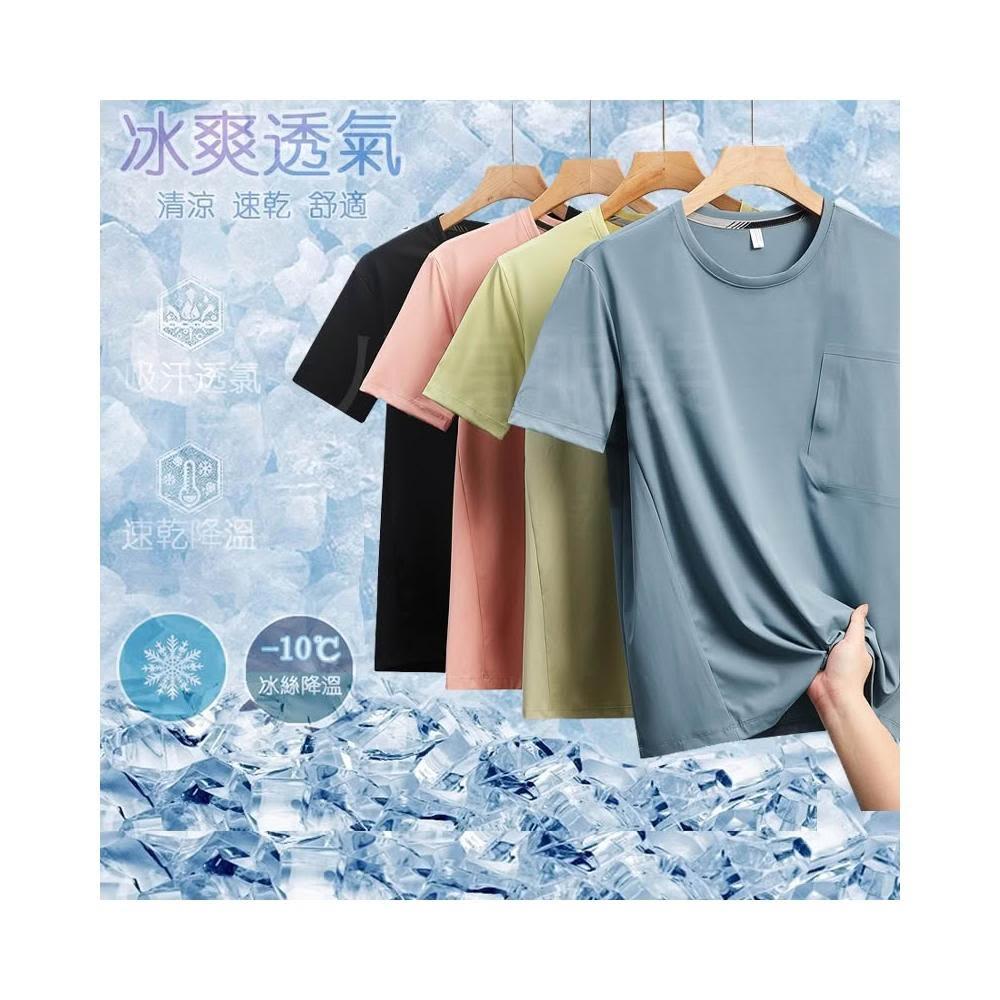 L-8XL 排汗衫 涼感衣 排汗衣 速乾衣 吸濕排汗衣 大尺碼冰絲T恤 圓領短袖 速乾衣男 涼感T恤 薄款短T
