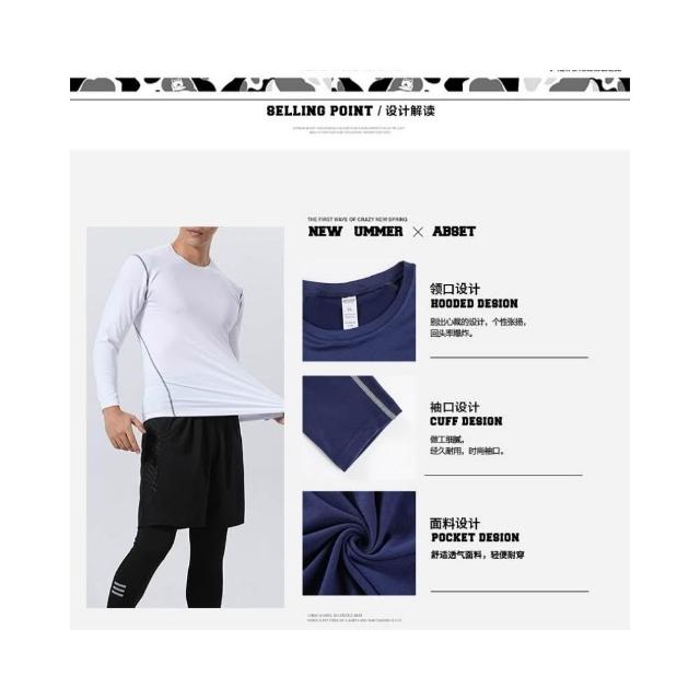 上衣男運動緊身速乾長袖吸濕排汗衫冰絲涼感T恤速乾衣薄款長t男生時尚圓領籃球足球跑步訓練休閑打底衫健身房百搭男裝彈力透氣