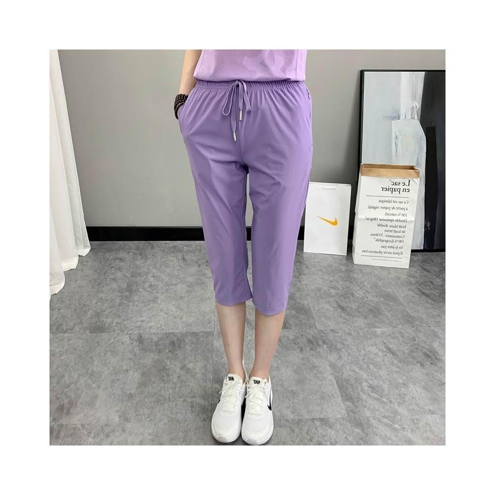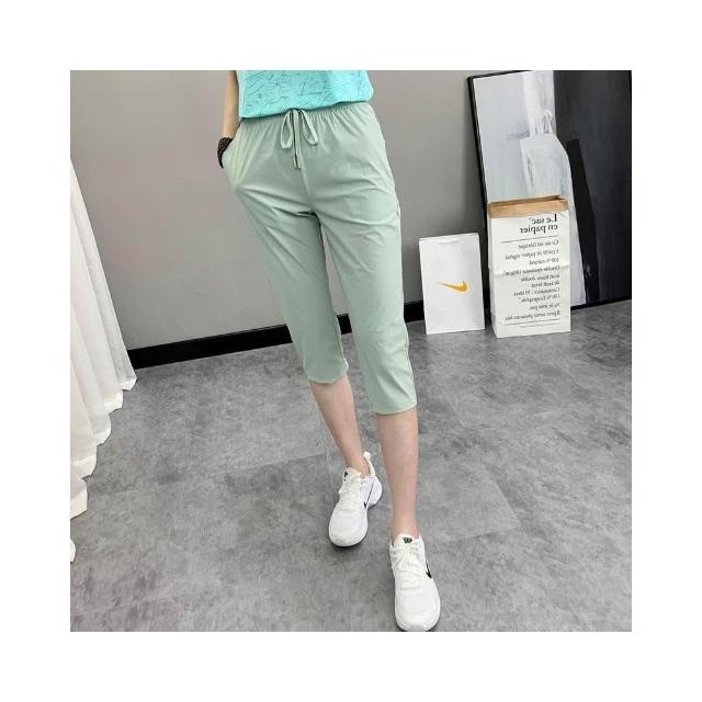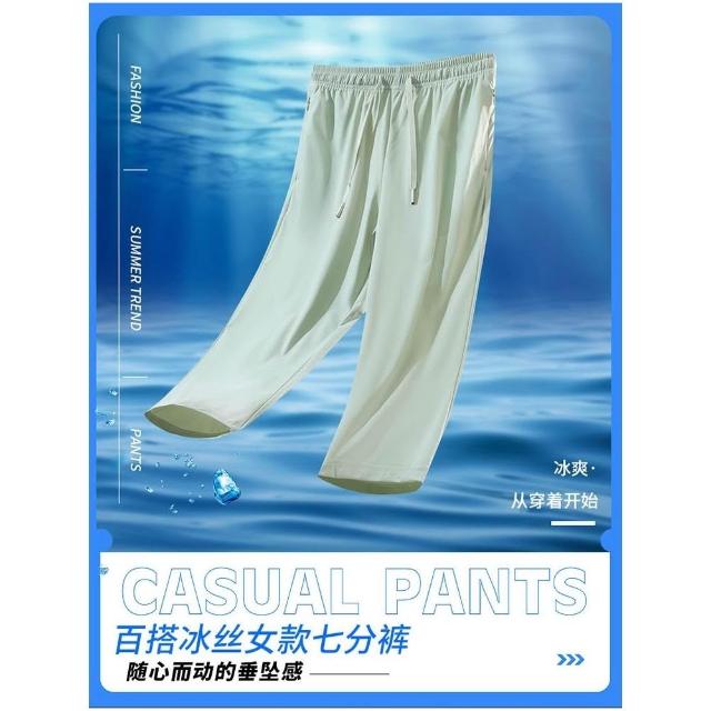 涼感褲女夏天薄款七分褲冰絲運動7分褲速乾透氣吸濕排汗寬鬆休閒褲時尚百搭彈力夏季青少年潮流清涼冰爽降溫直筒下著女生涼感寬褲