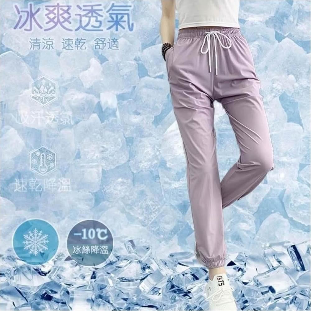 涼感褲女夏日必備透氣涼感冰絲運動長褲速乾排汗休閒闊腿褲束口縮口褲大尺碼彈性冰涼工作褲太極褲清爽涼感褲夏天緊身直筒女裝下著