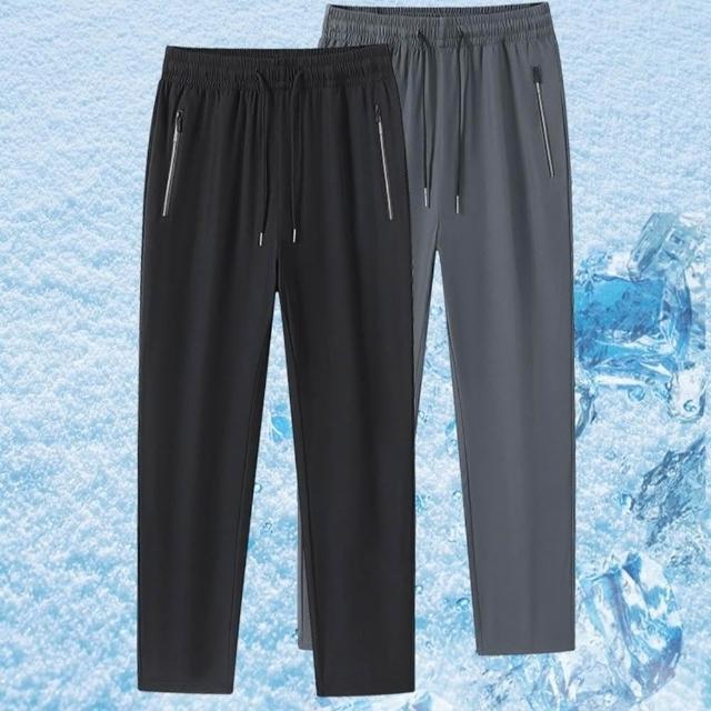 涼感褲男冰絲夏天速乾透氣夏季休閒長褲輕薄寬鬆透氣直筒褲高彈性褲速乾大尺碼男生闊腿褲跑步運動吸濕排汗耐磨平口下著涼感寬褲