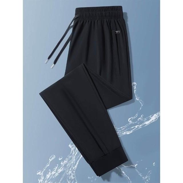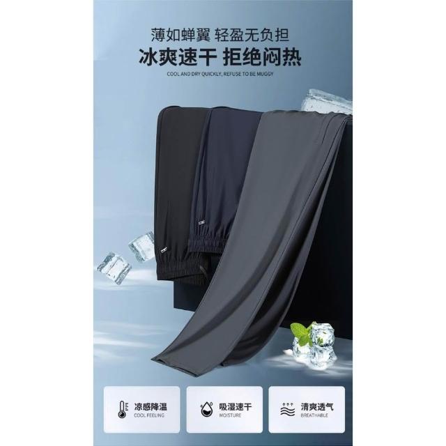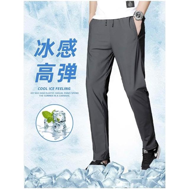冰絲褲男速乾褲冰絲長褲男褲男涼感長褲休閒褲涼感男休閒夏季中青年男士速幹褲薄款運動休閑彈力褲子直筒大碼透氣束口長款大碼