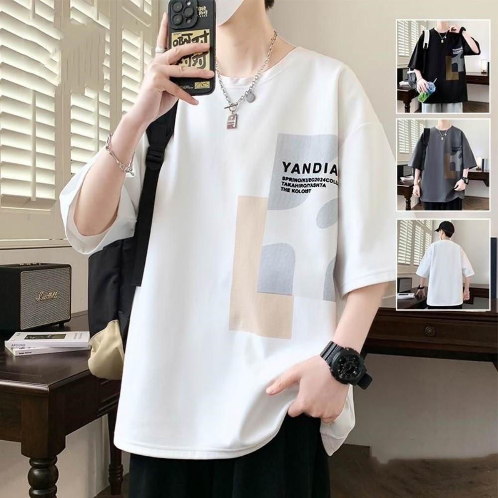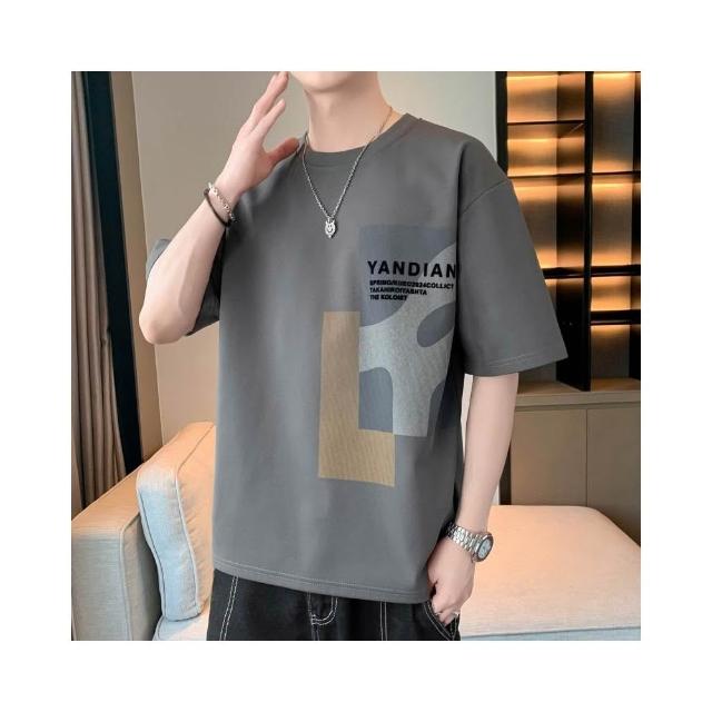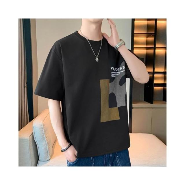 T恤男夏天大尺碼上衣短袖男生寬鬆t恤男士柔軟舒適透氣吸濕排汗親膚港風多彩植絨印花夏季青少年潮牌時尚百搭休閑運動男裝