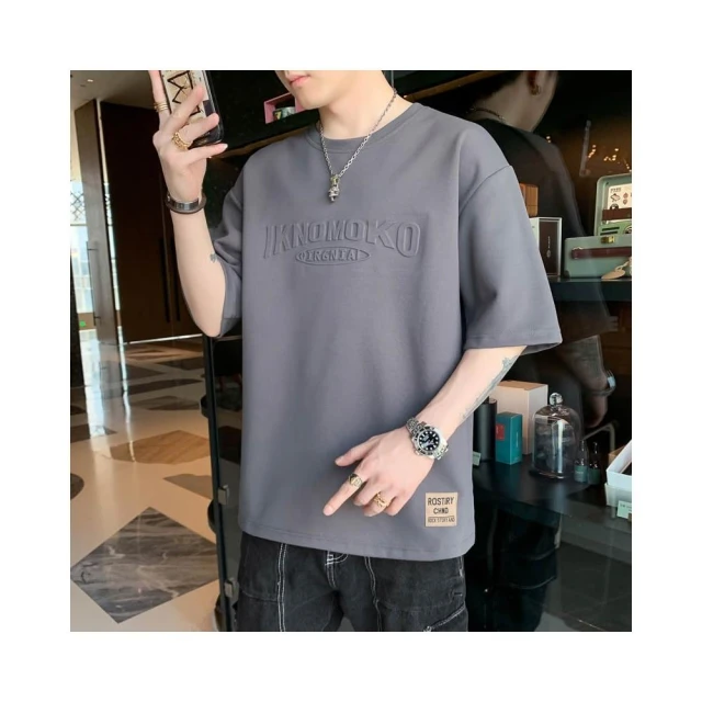 T恤男大尺碼短袖短t上衣透氣吸濕排汗柔軟男士t恤男生時尚百搭衣服大尺碼男衣短袖鋼印酷絲棉T恤美式復古街頭嘻哈潮牌寬松男裝