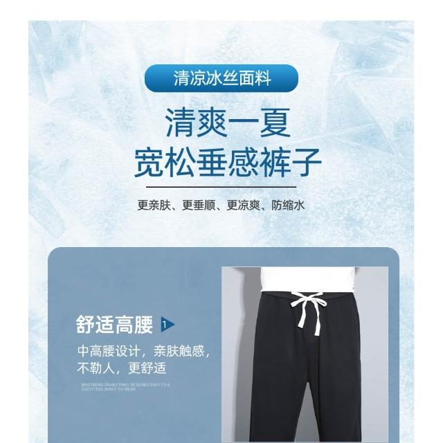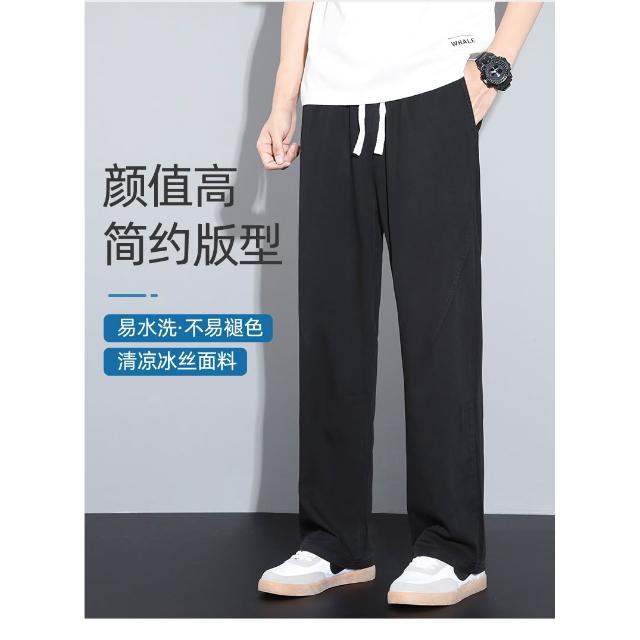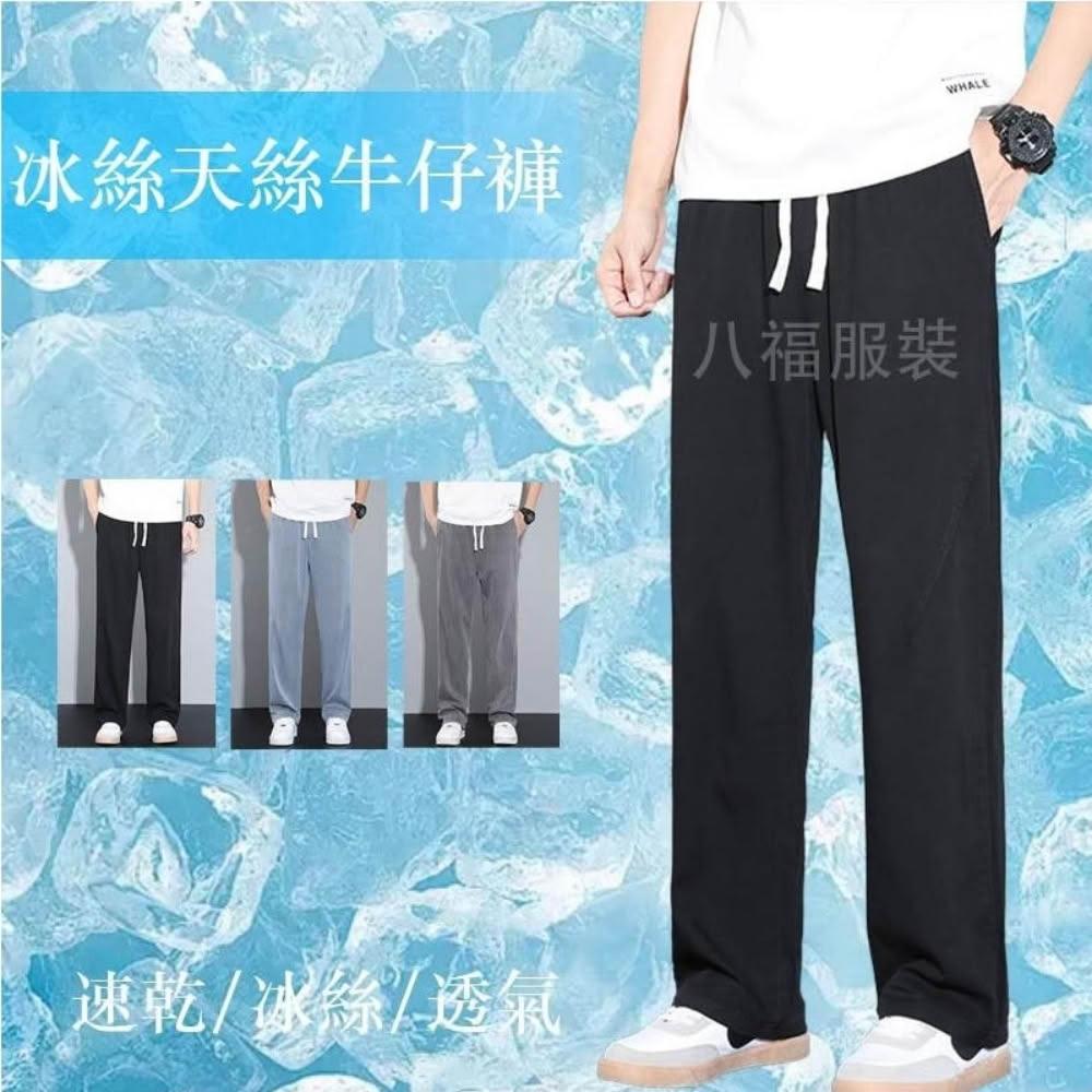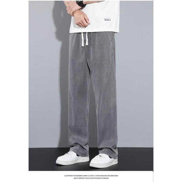 牛仔褲男冰絲涼感牛仔直筒長褲夏季男生春夏港風天絲寬鬆韓版潮流百搭復古ins潮牌抽繩繫帶褲子薄款抗皺天絲萊賽爾直筒舒適垂順