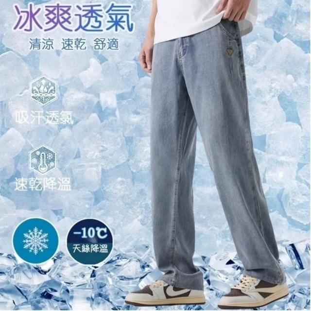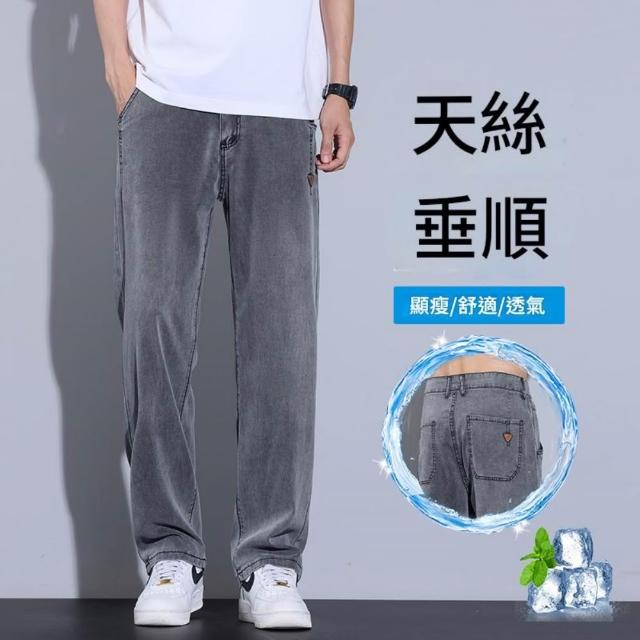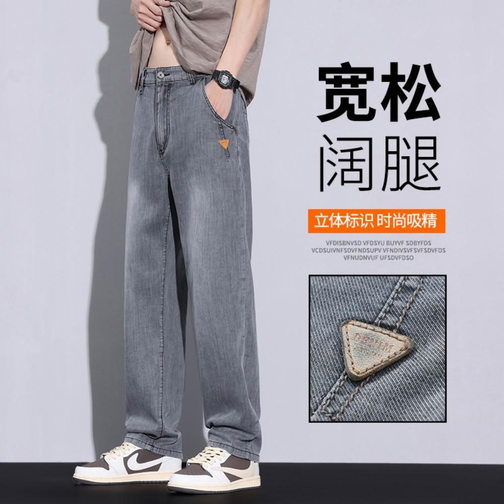 牛仔褲男夏季薄款透氣休閒褲寬鬆彈性大碼直筒褲夏天韓版灰色男生時尚百搭中腰長褲男士涼感寬褲天絲彈性下著冰絲超薄垂順牛仔短褲