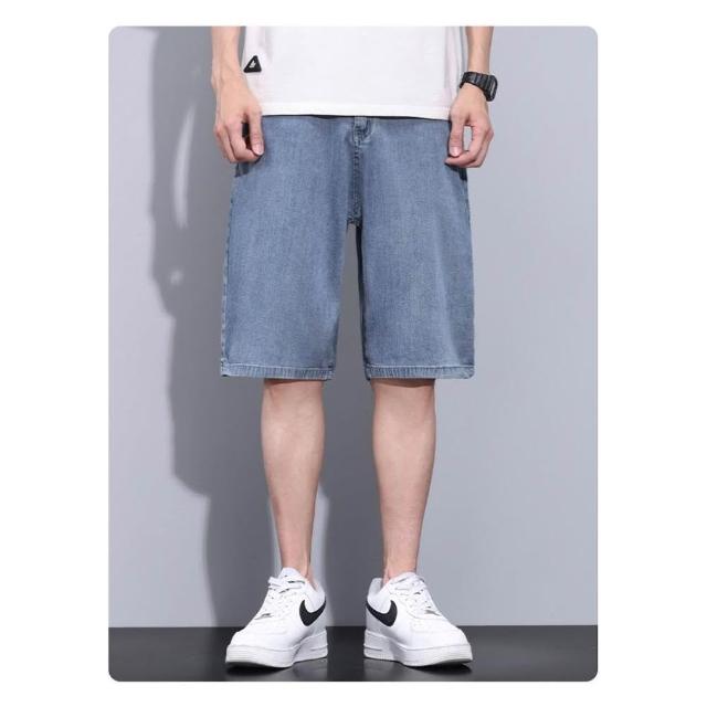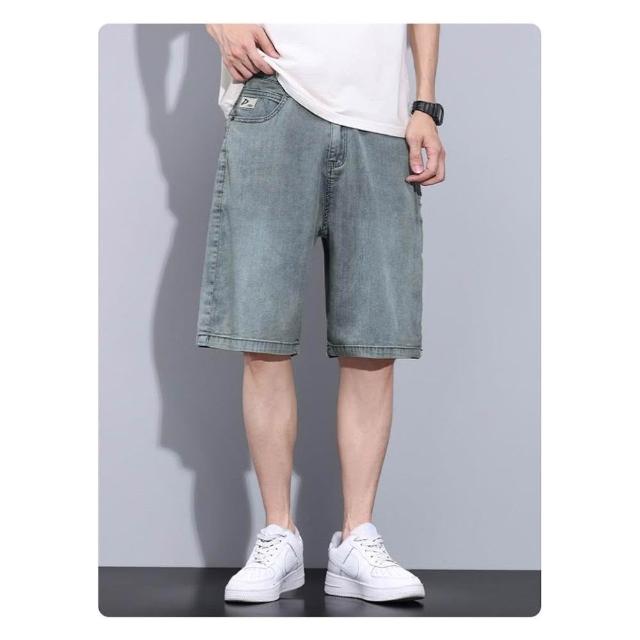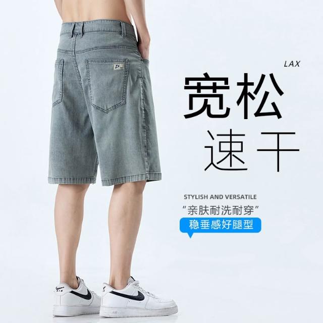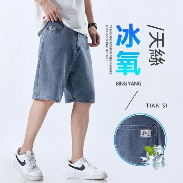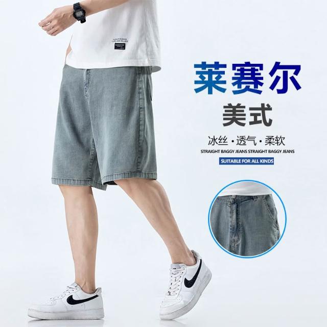 牛仔褲男2025新款夏季天絲萊爾賽寬鬆鬼洗牛仔休閒短褲冰絲涼感五分褲超薄美式復古休閒褲中腰直筒垂順沙灘褲舒適柔軟涼感寬褲
